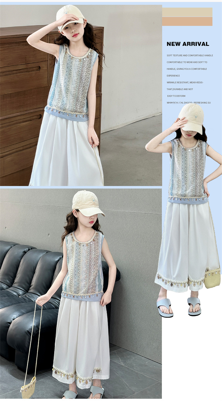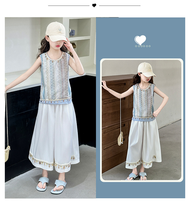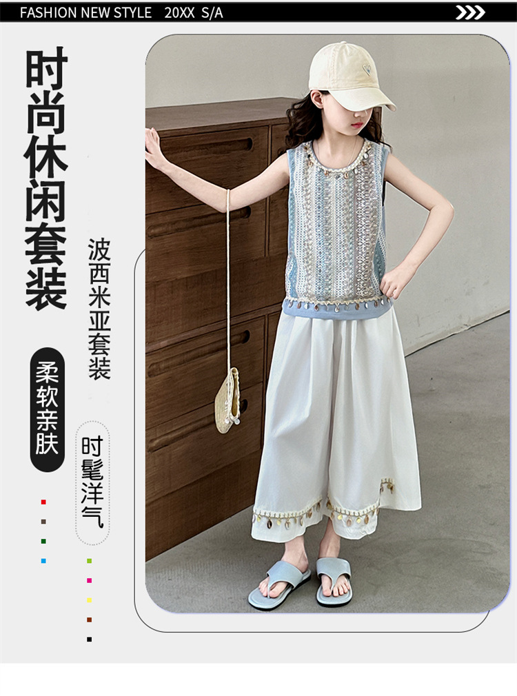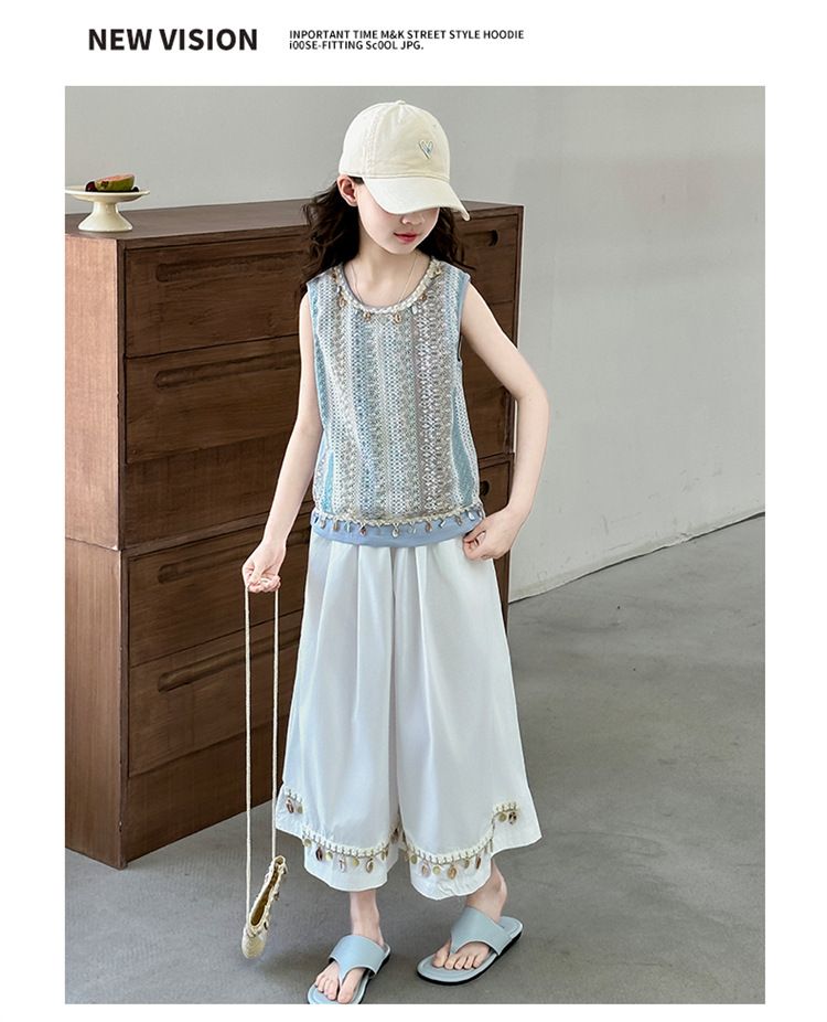 한국 스타일 소녀 2025 중 큰 키즈 여름 새로운 한국 스타일 유행 캐주얼 얇은 보헤미안 세트