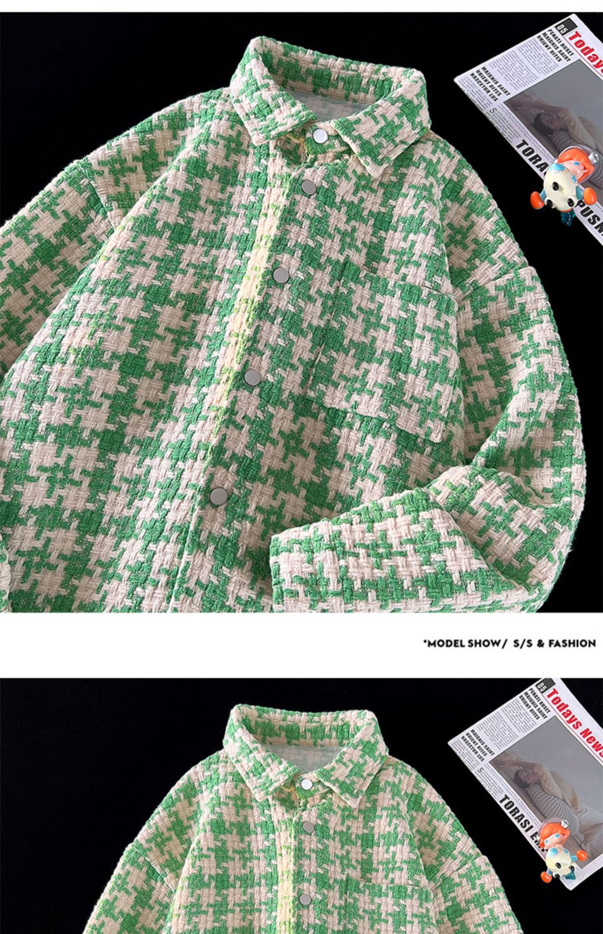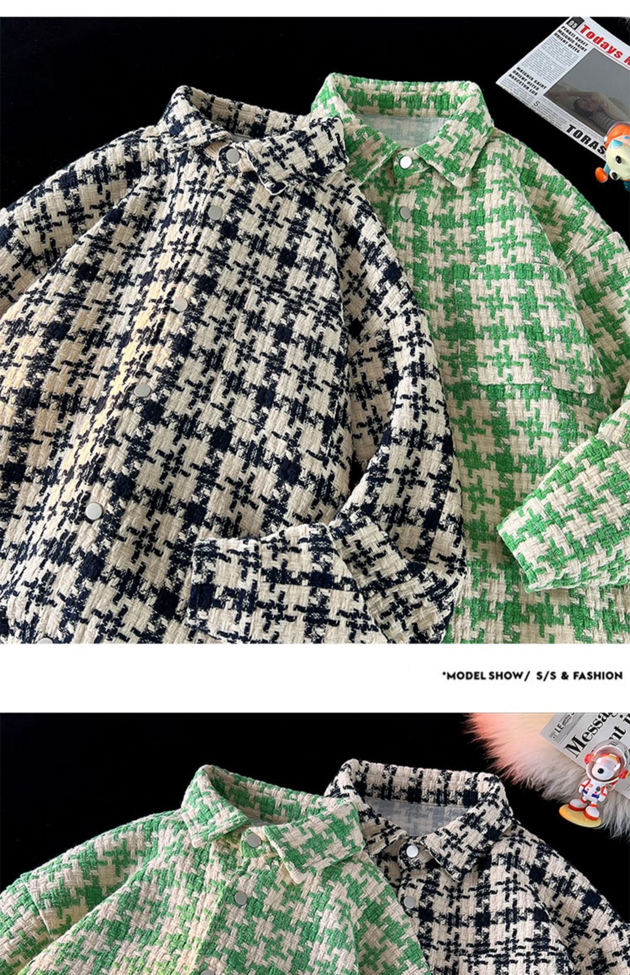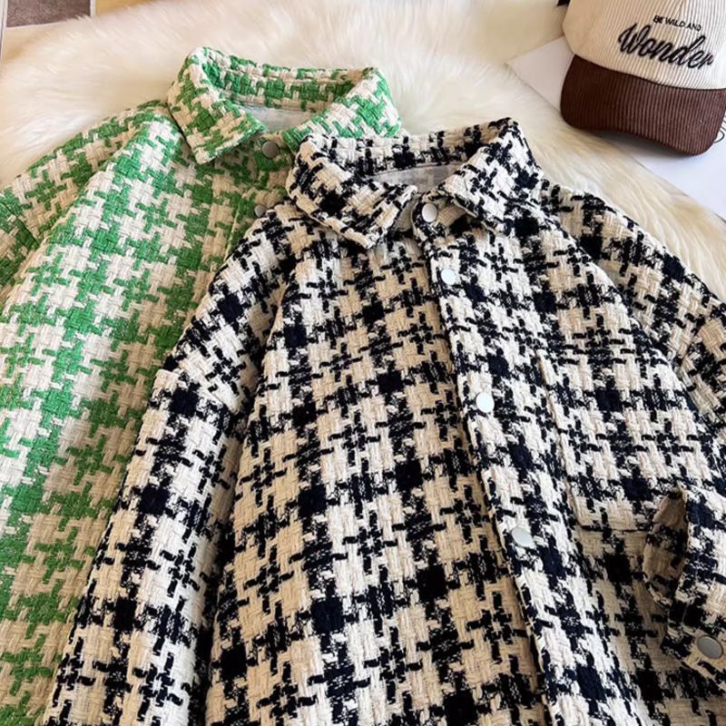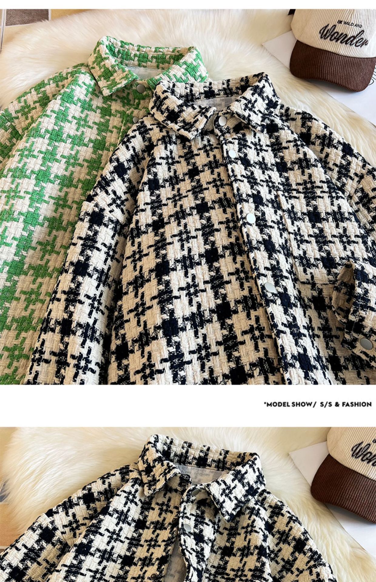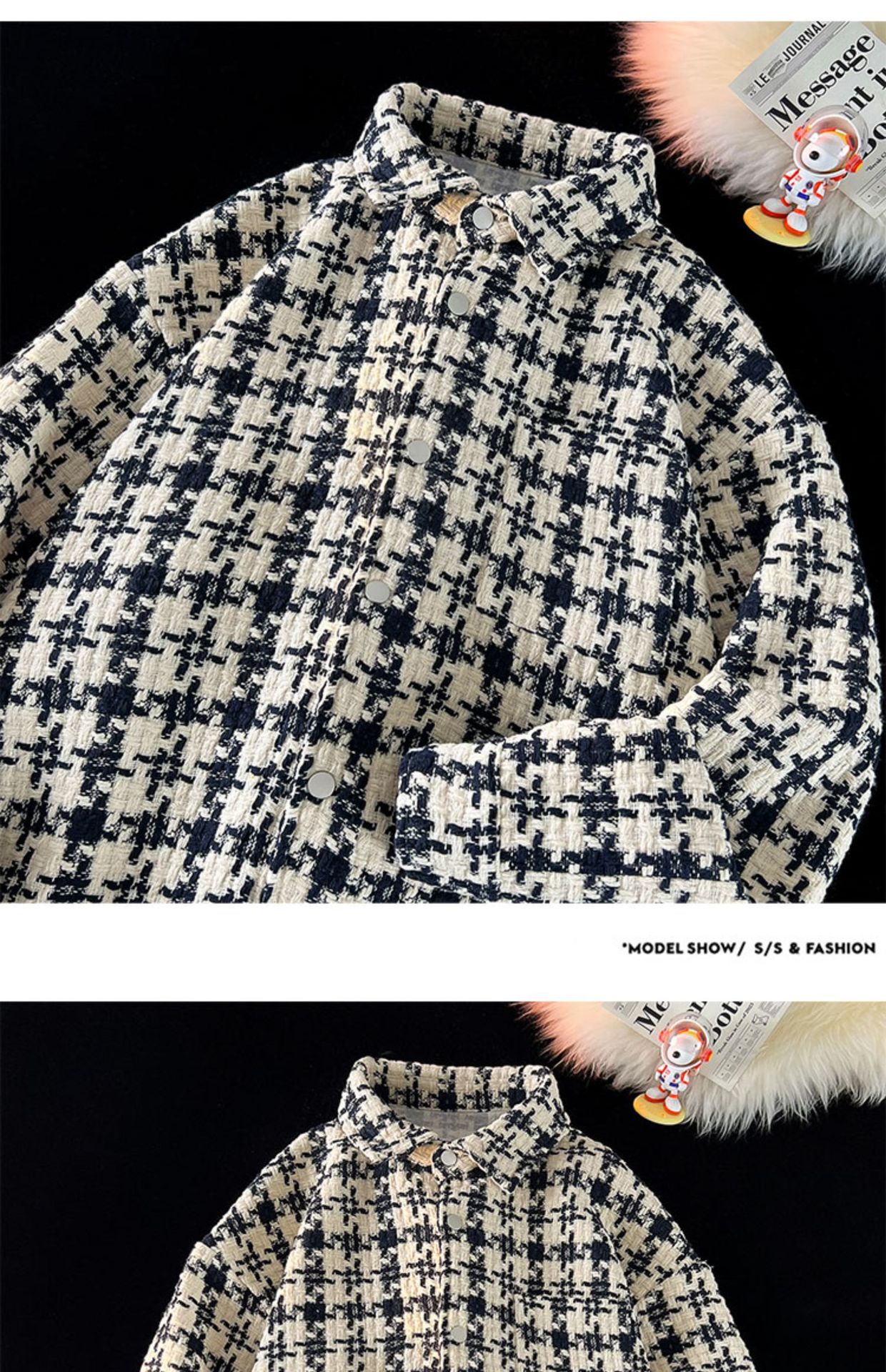 Houndstooth Chanel 스타일 재킷 남자의 봄과 가을 느슨한 캐주얼 탑 트렌디 브랜드 플러스 사이즈 디자인 센스 랩 칼라 재킷스토어 가기