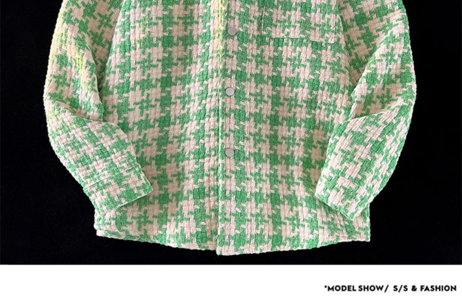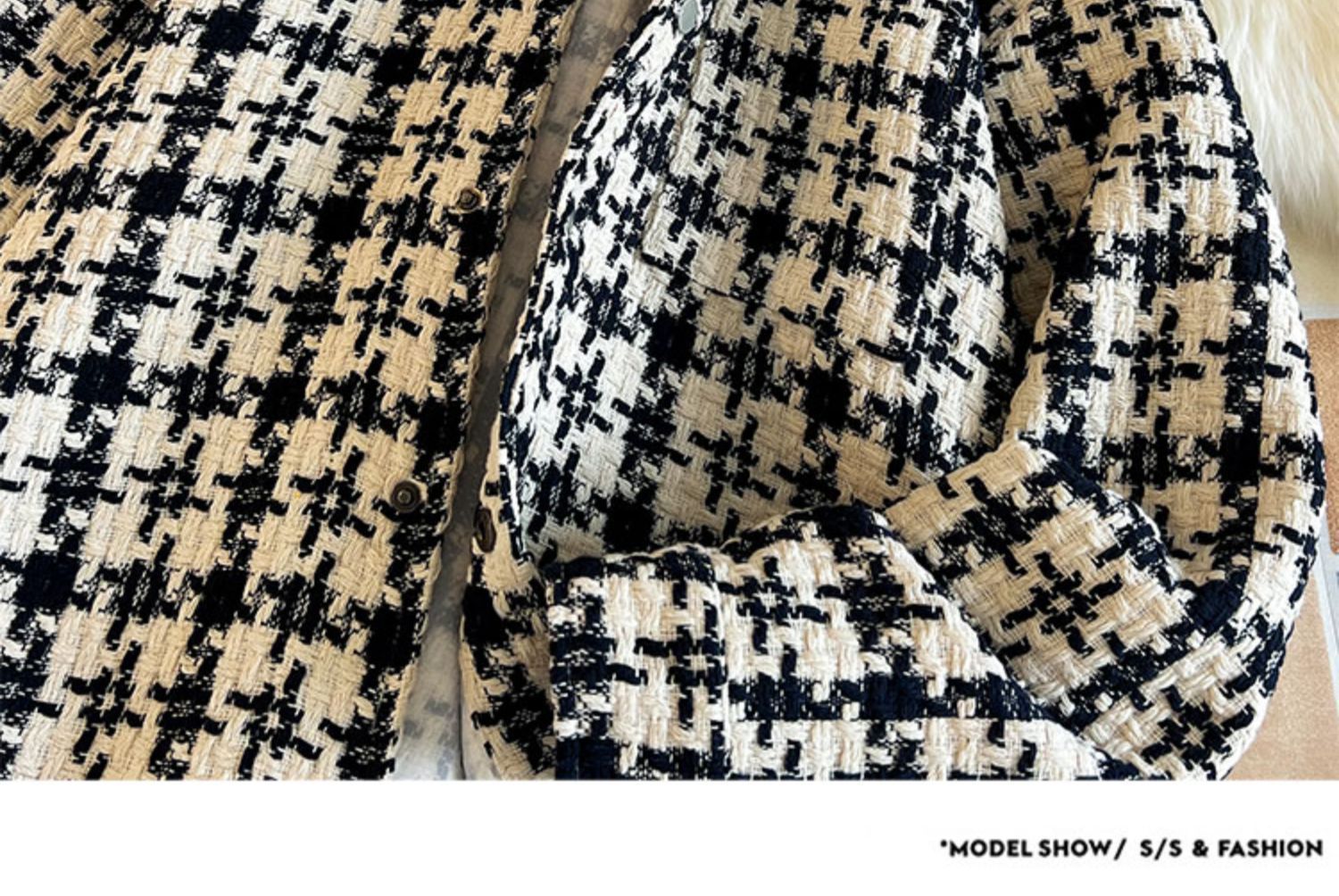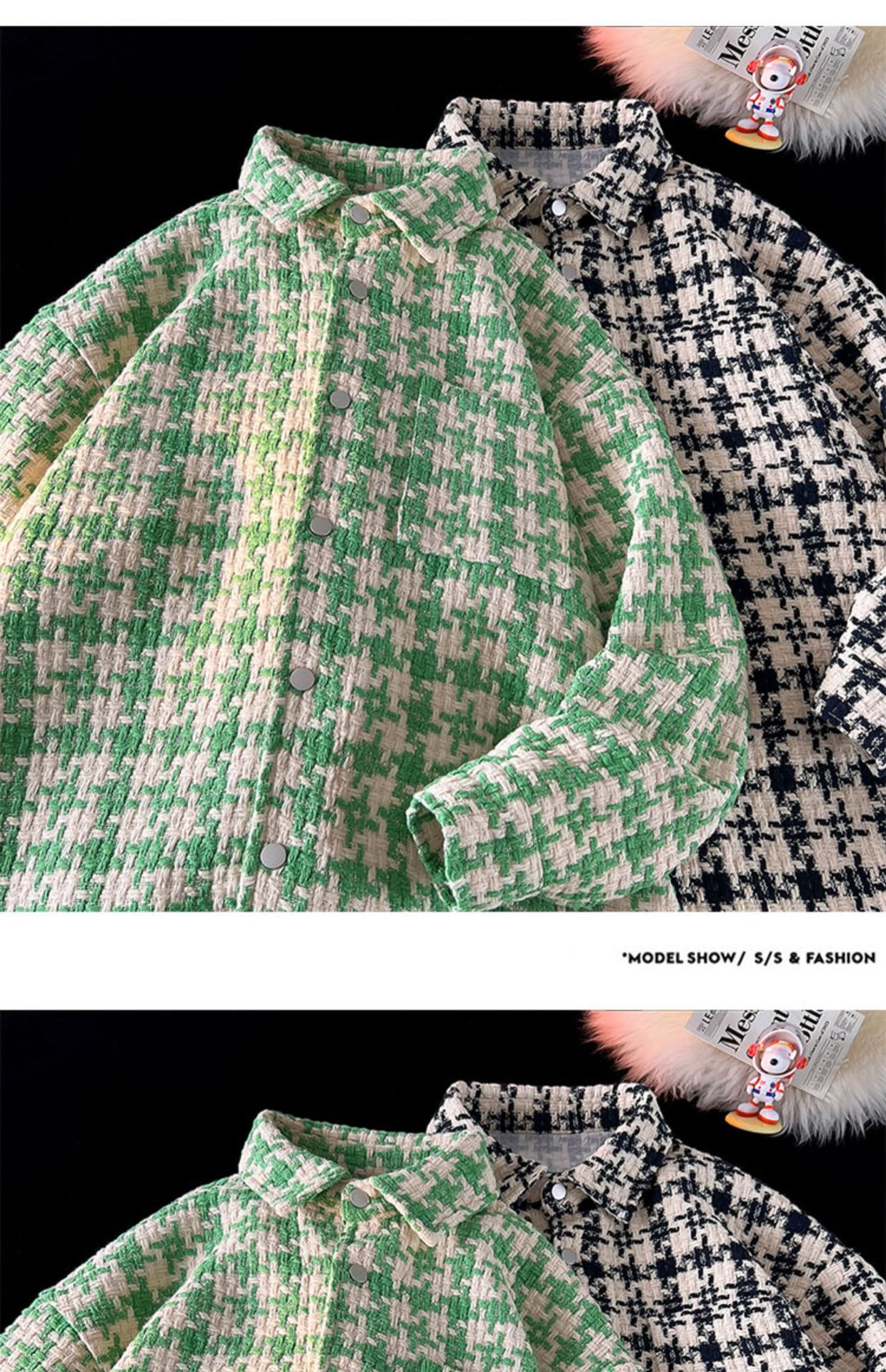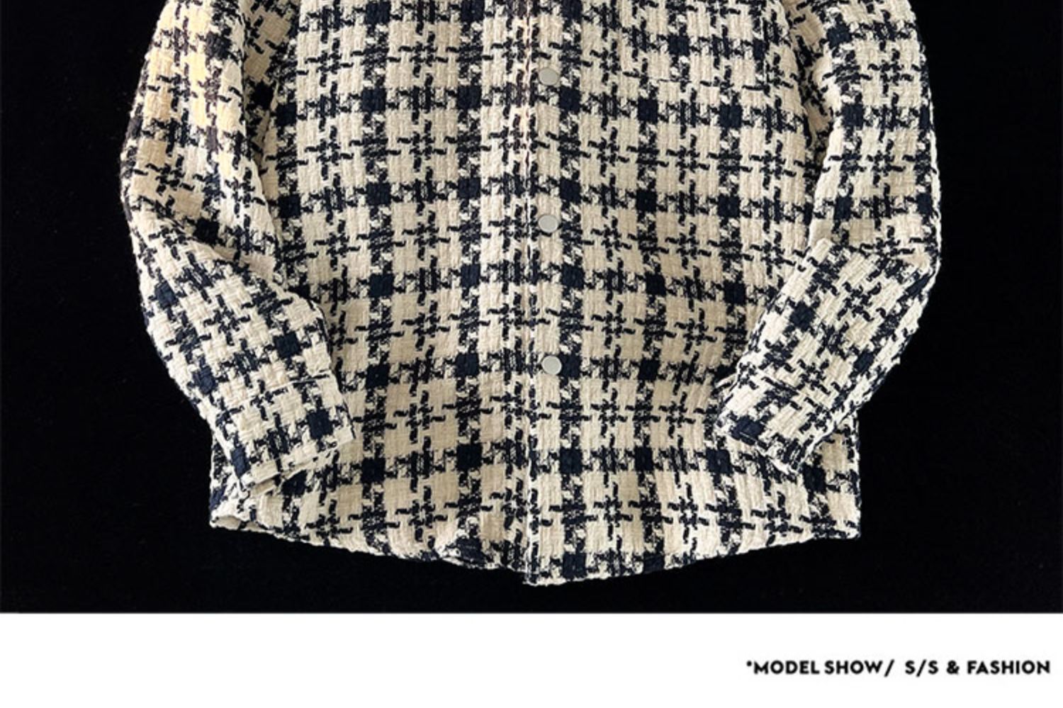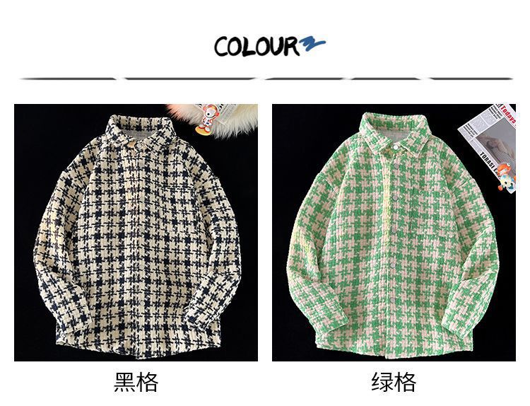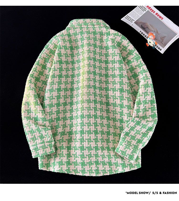 Houndstooth Chanel 스타일 재킷 남자의 봄과 가을 느슨한 캐주얼 탑 트렌디 브랜드 플러스 사이즈 디자인 센스 랩 칼라 재킷스토어 가기