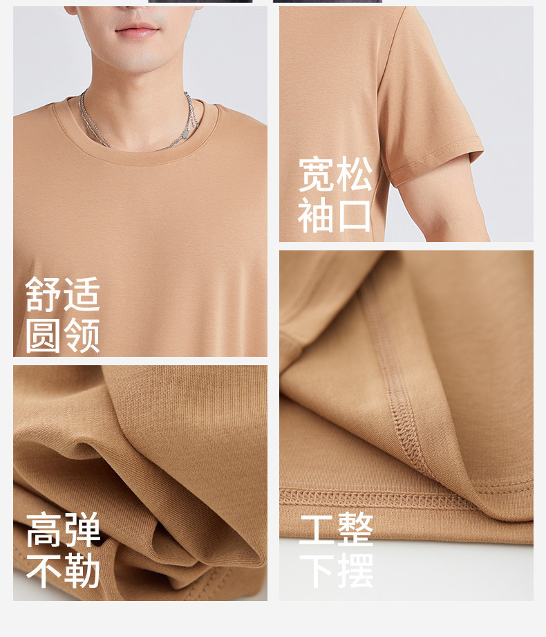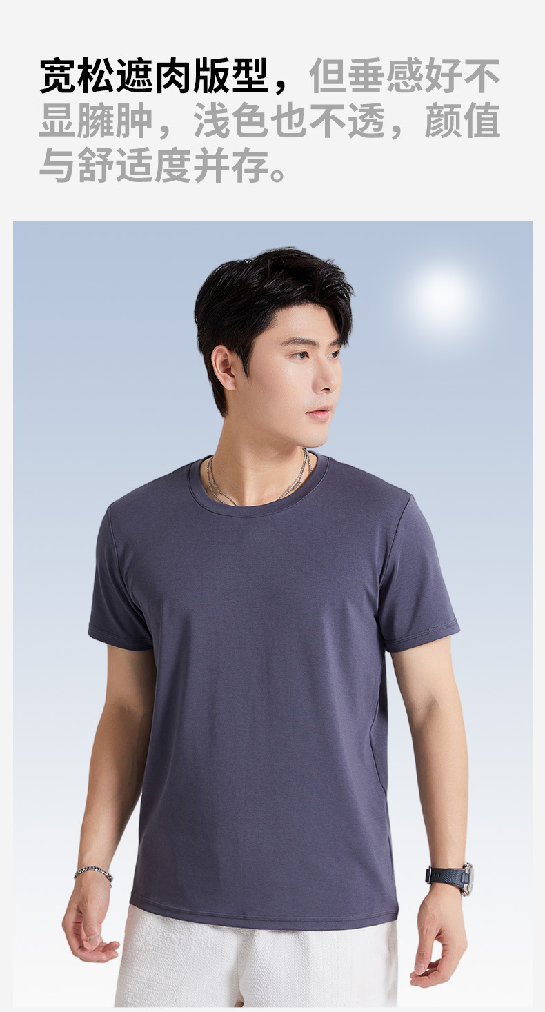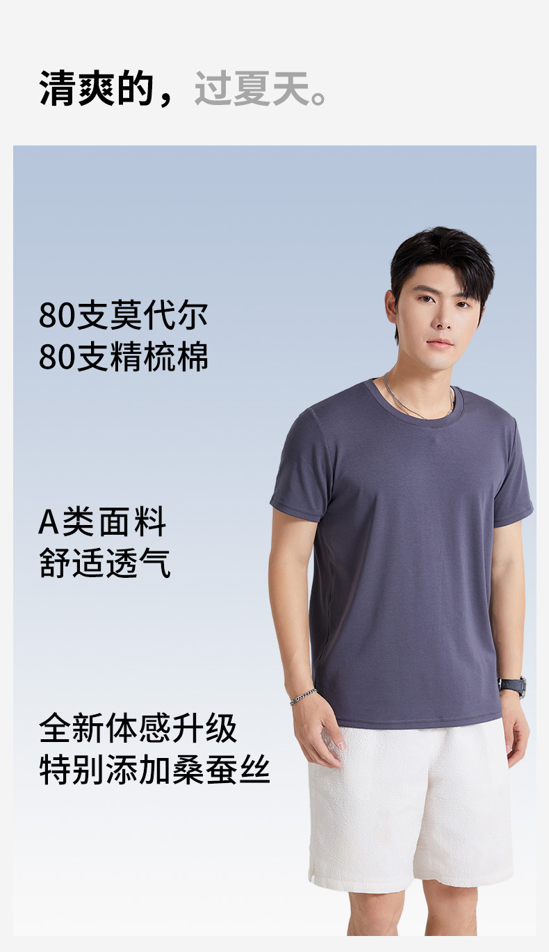 모달 뽕나무 실크 반팔 남성 티셔츠 풀린 둥근 목 여름 얇은 청소년 중량급 티셔츠 남성복스토어 가기