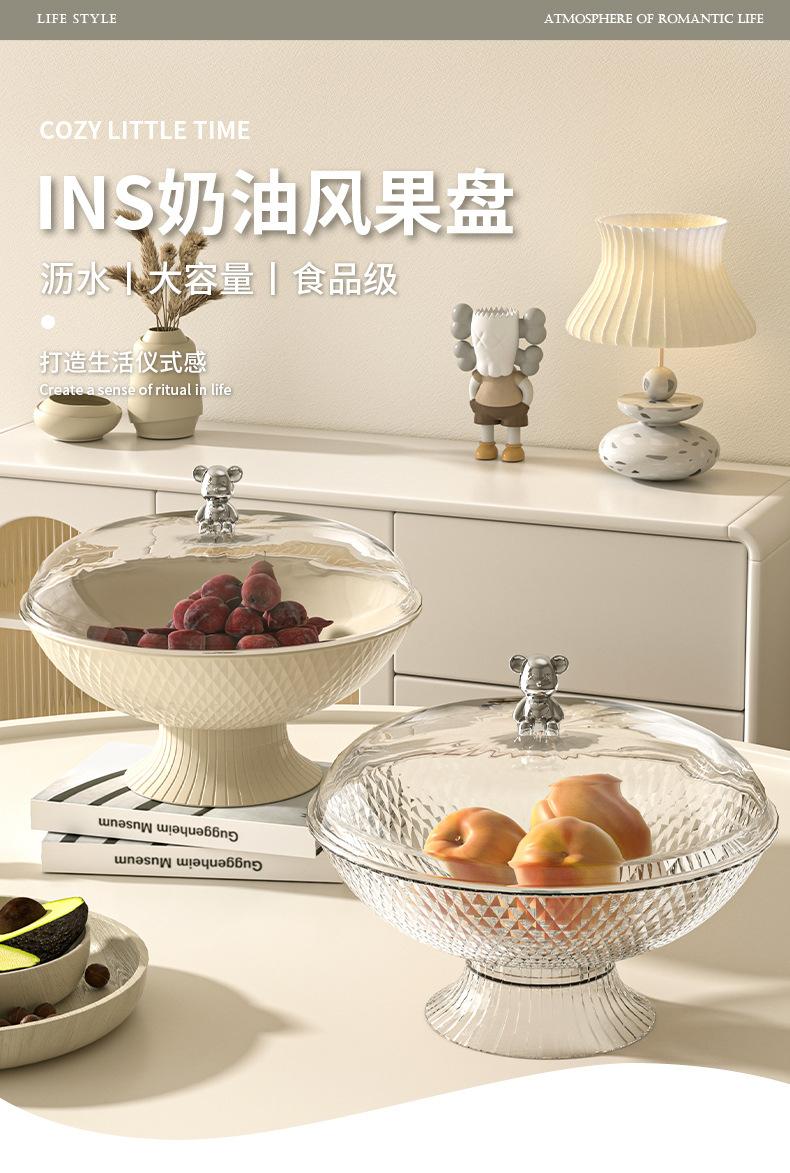 투명한 거실 하이 엔드 가정용 말린 과일 플레이트 라이트 럭셔리 멀티 레이어 높은 가치 인터넷 연예인 Ins 스타일 뚜껑 바구니