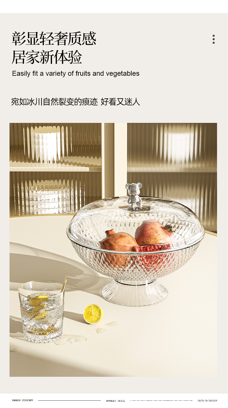 투명한 거실 하이 엔드 가정용 말린 과일 플레이트 라이트 럭셔리 멀티 레이어 높은 가치 인터넷 연예인 Ins 스타일 뚜껑 바구니스토어 가기