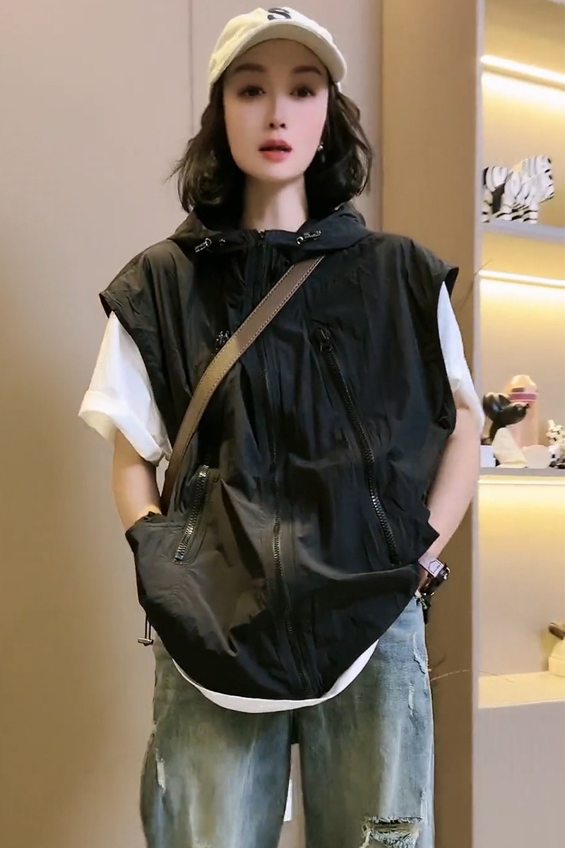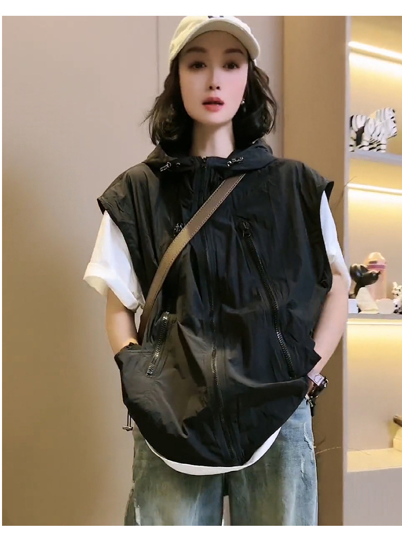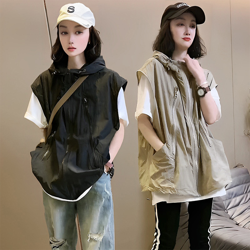 여성을위한 멀티 지퍼 후드 자켓 조끼 가을 새로운 통기성 한국 스타일 느슨한 슬림 캐주얼 패션 조끼 자켓