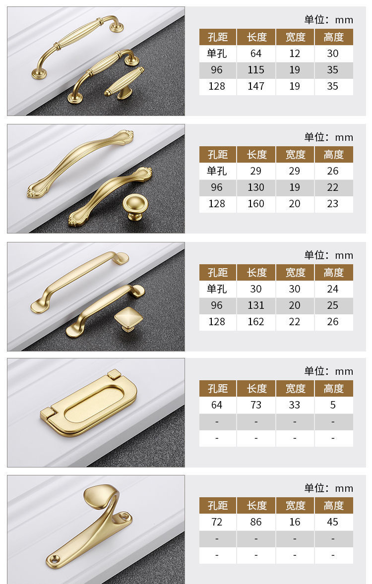 샹야 옷장 miao 문 손잡이 서랍 캐비닛 밝은 금 빛 고급 미국 간단한 유럽 작은 손잡이 도매