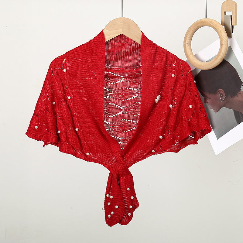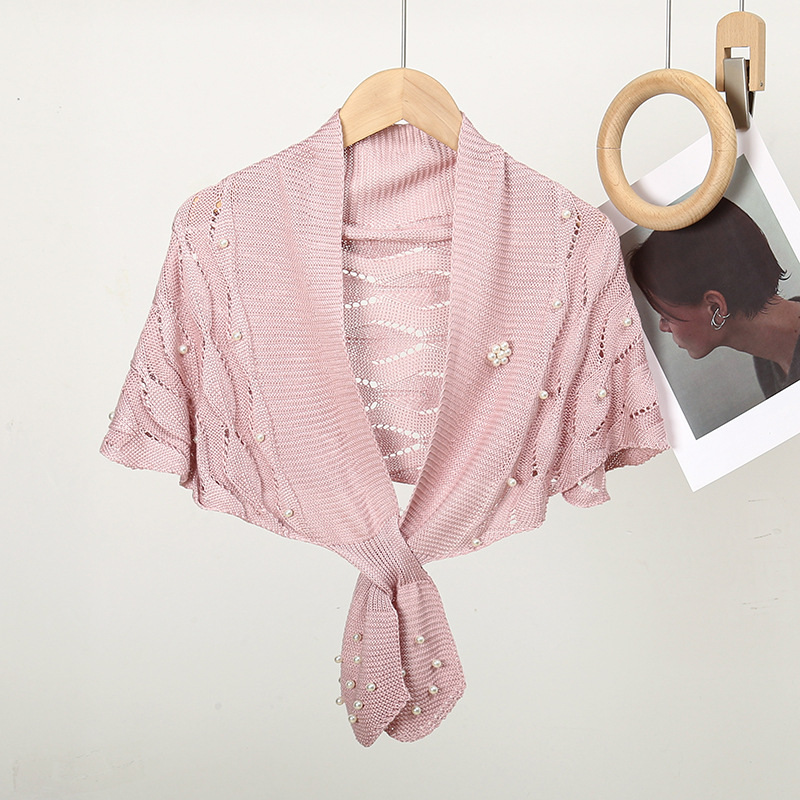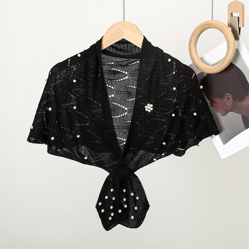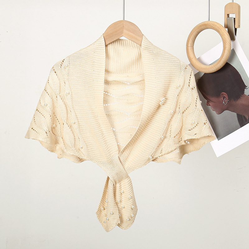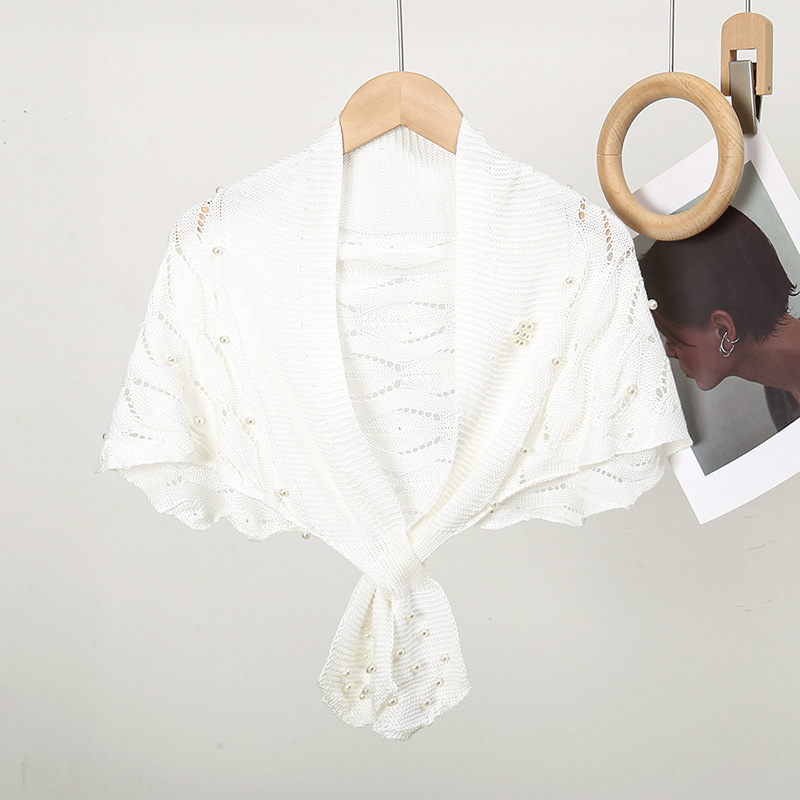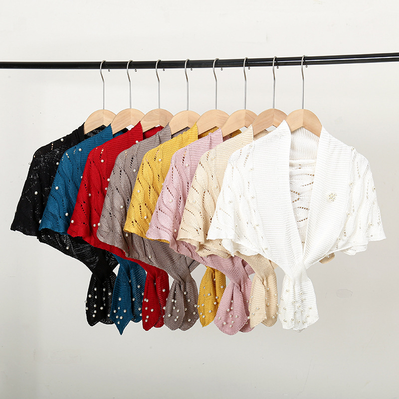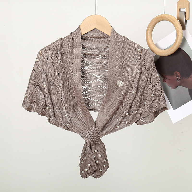 여성용 봄 여름 사무실 에어컨 방 외부 경추 스카프 장식용 여름 니트 중공 비즈 숄스토어 가기