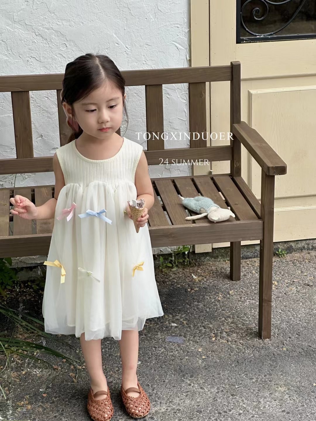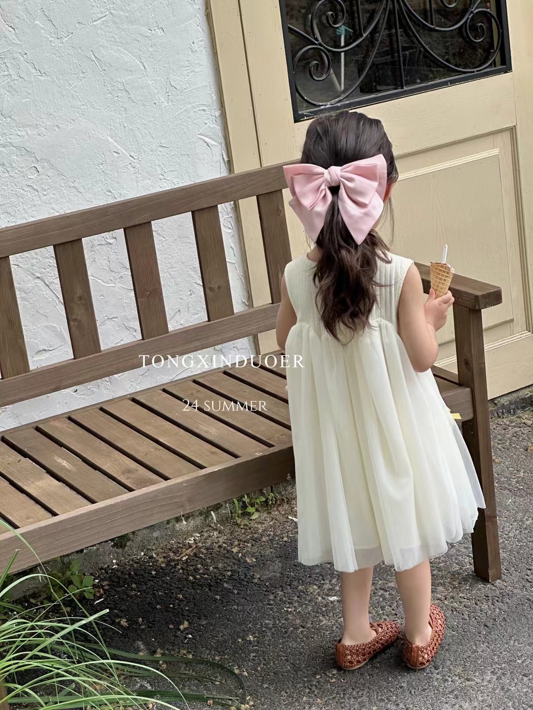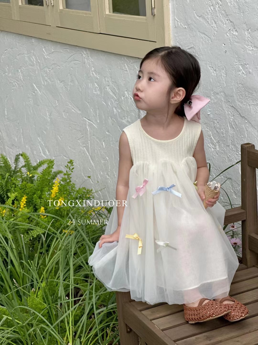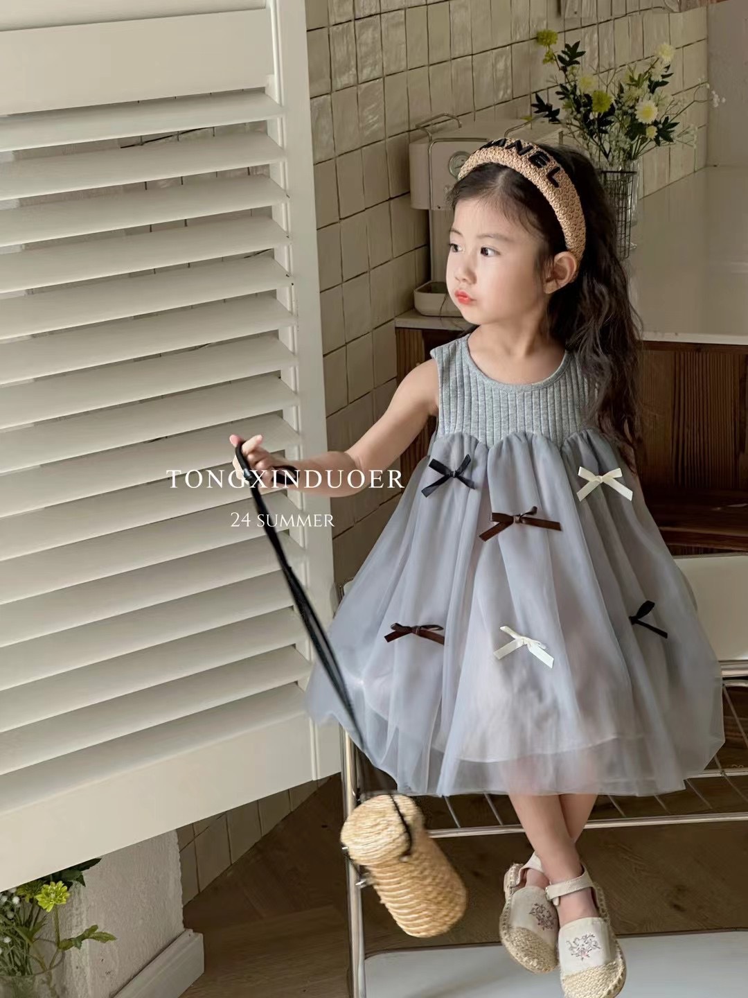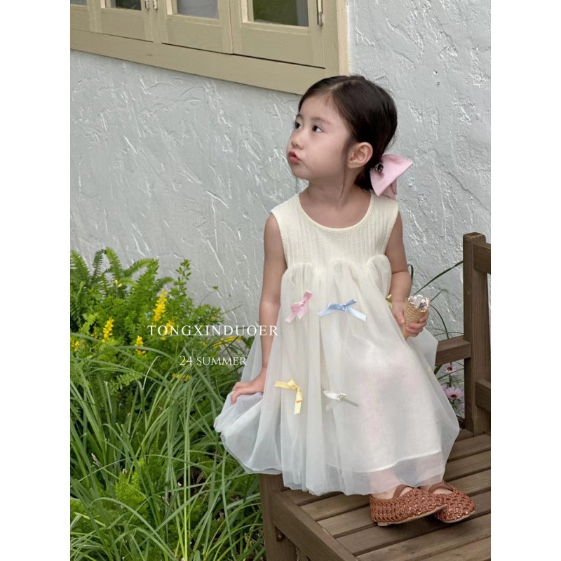여자 여름 얇은 원피스 2024 새로운 어린이 민소매 조끼 메쉬 스커트 아기 활 공주 원피스스토어 가기