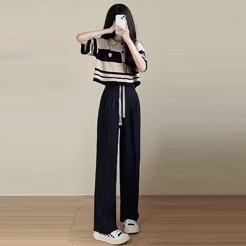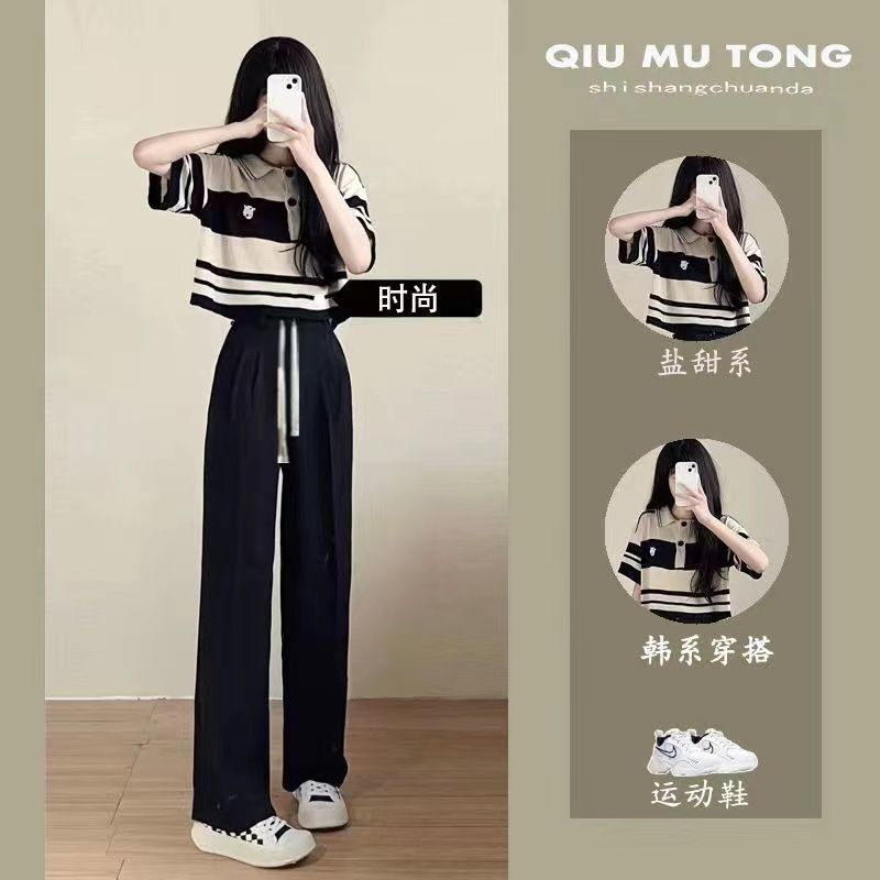 [점포 판매] 2025 년 여름 소금착용 세트 여성 신형 한국형 루즈형 티셔츠 스몰 인 와이드