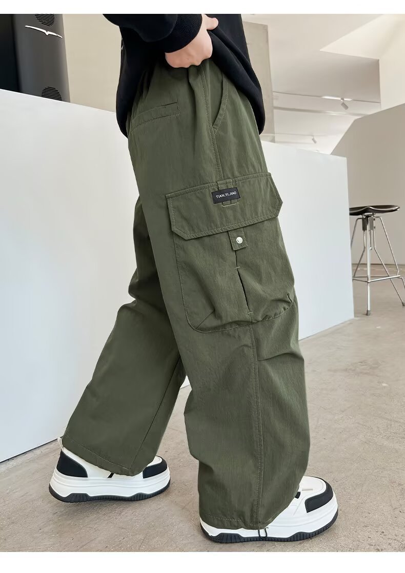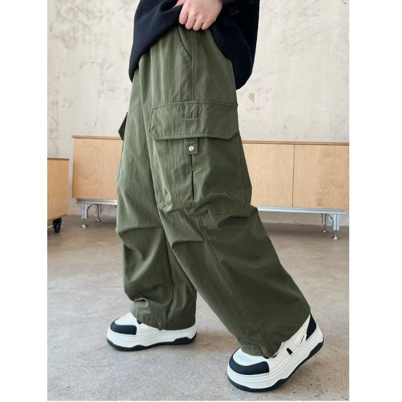 아동복 소년 2025 봄, 가을 새로운 패션 느슨한 중대형 아동 캐주얼 포켓 와이드 레그 캐주얼 오버올 트렌디스토어 가기