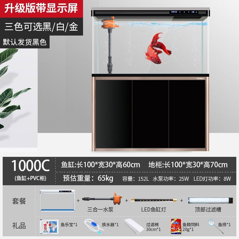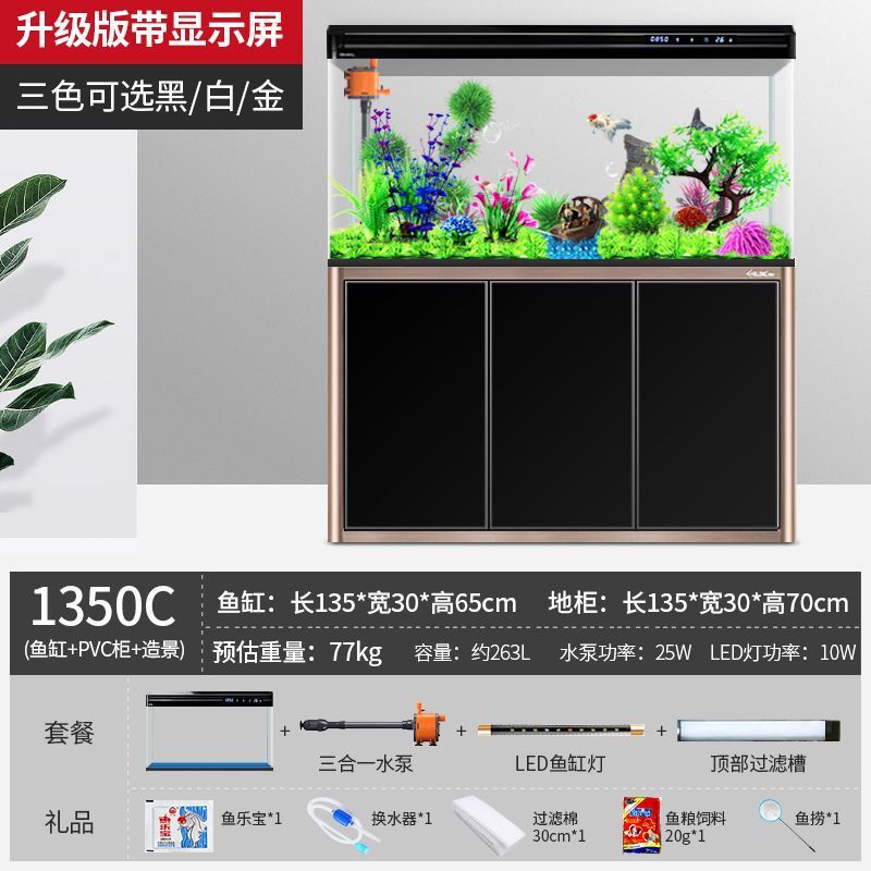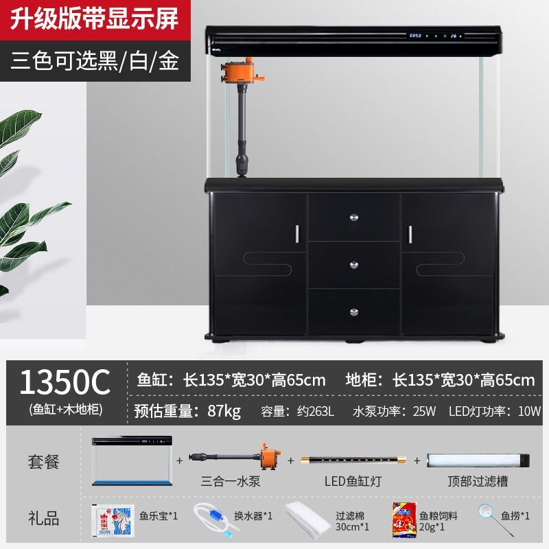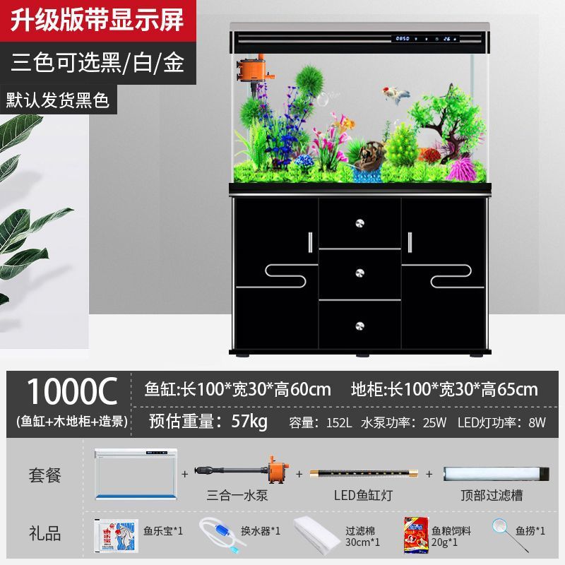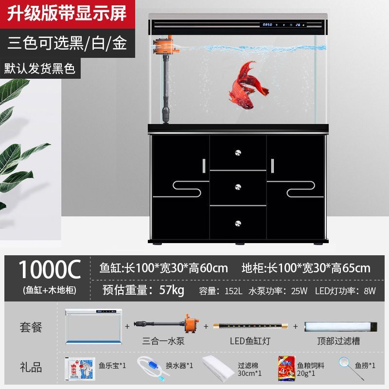 캐비닛이 있는 수조 홈 거실 바닥 유리 수족관 생태 교체 불가 중형 새 골드 모델 최소 배치스토어 가기