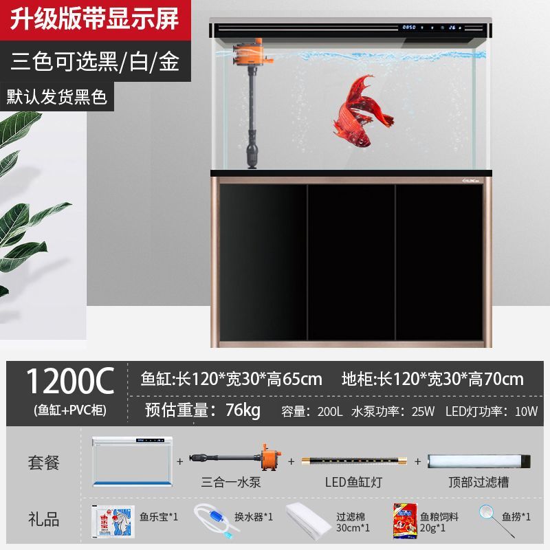 캐비닛이 있는 수조 홈 거실 바닥 유리 수족관 생태 교체 불가 중형 새 골드 모델 최소 배치