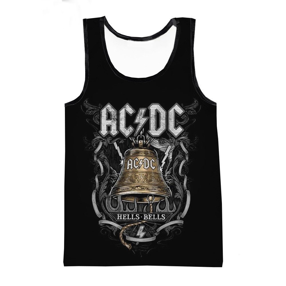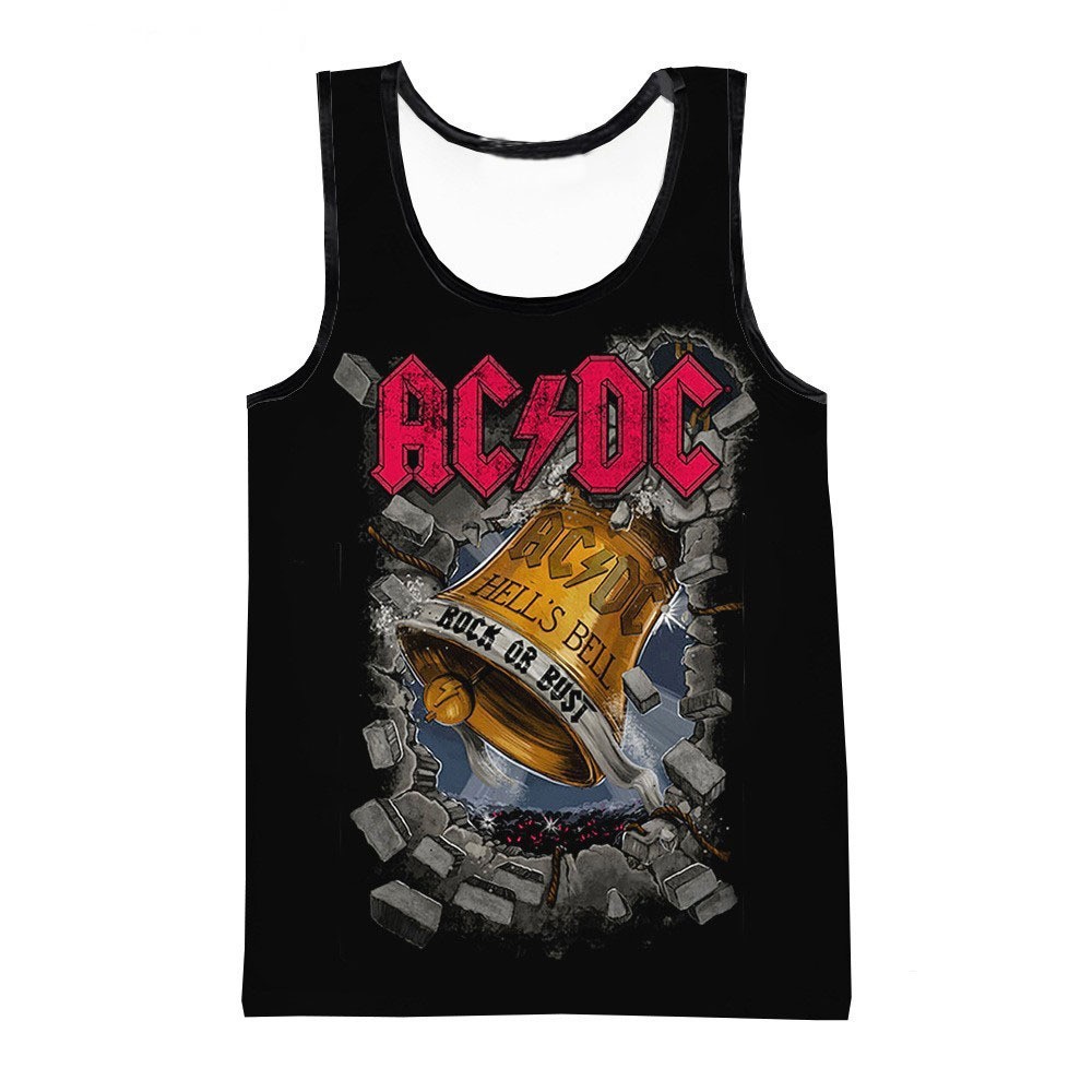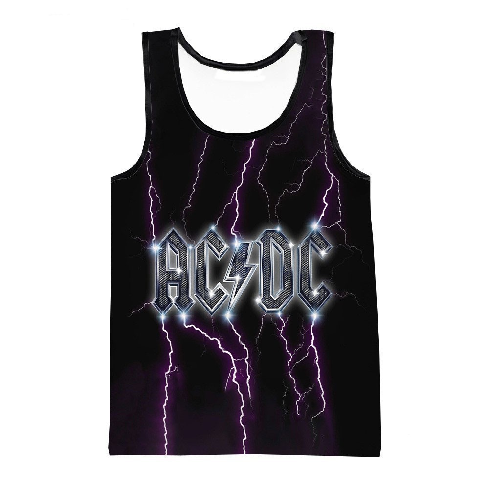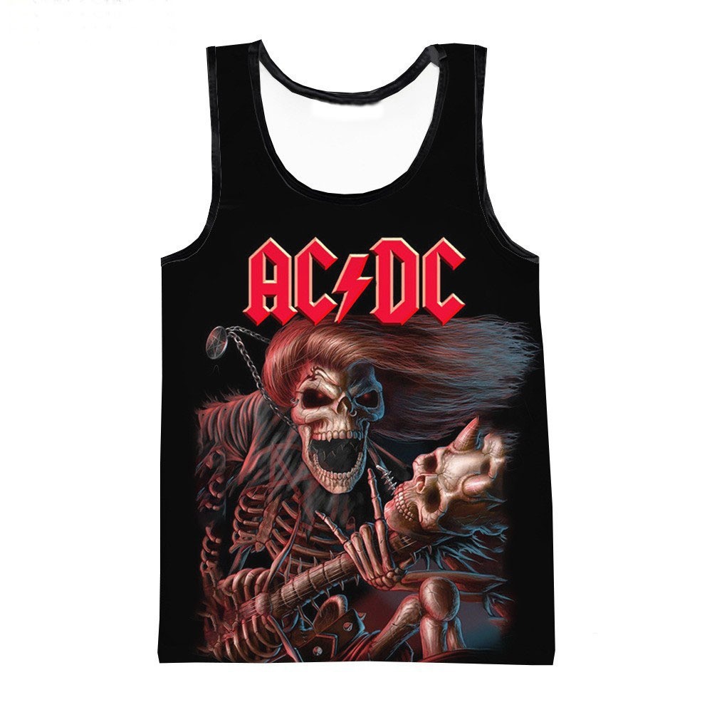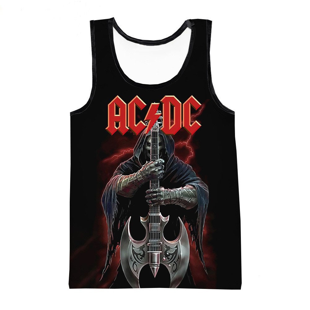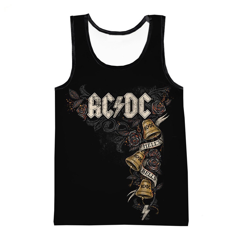 대외 무역 뜨거운 3D 디지털 인쇄 ACDC 록 밴드 유럽과 미국 남성 라운드 넥 조끼 트렌드 캐주얼 짧은 소매스토어 가기