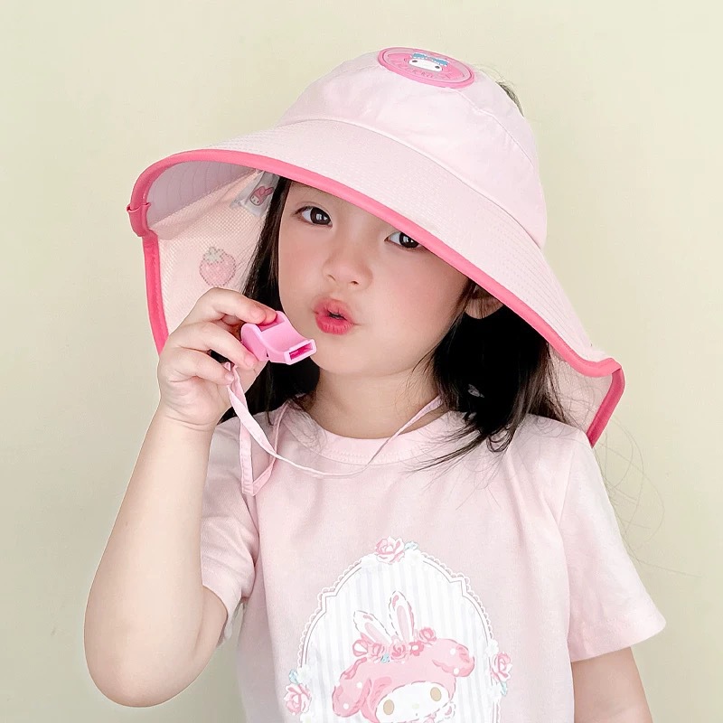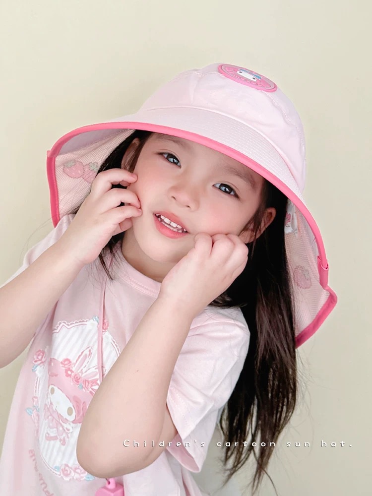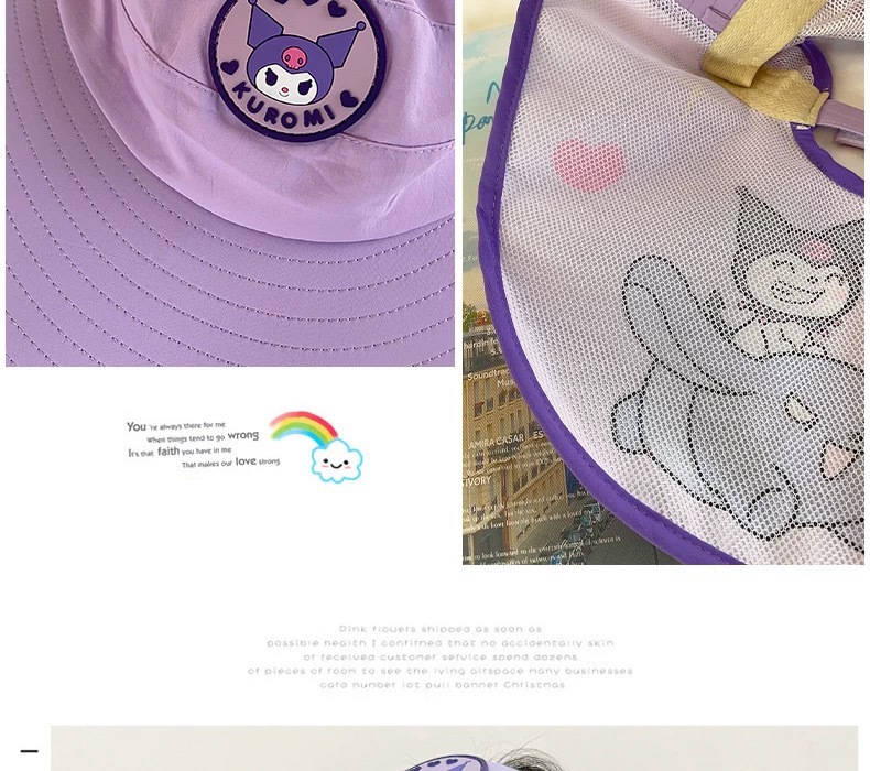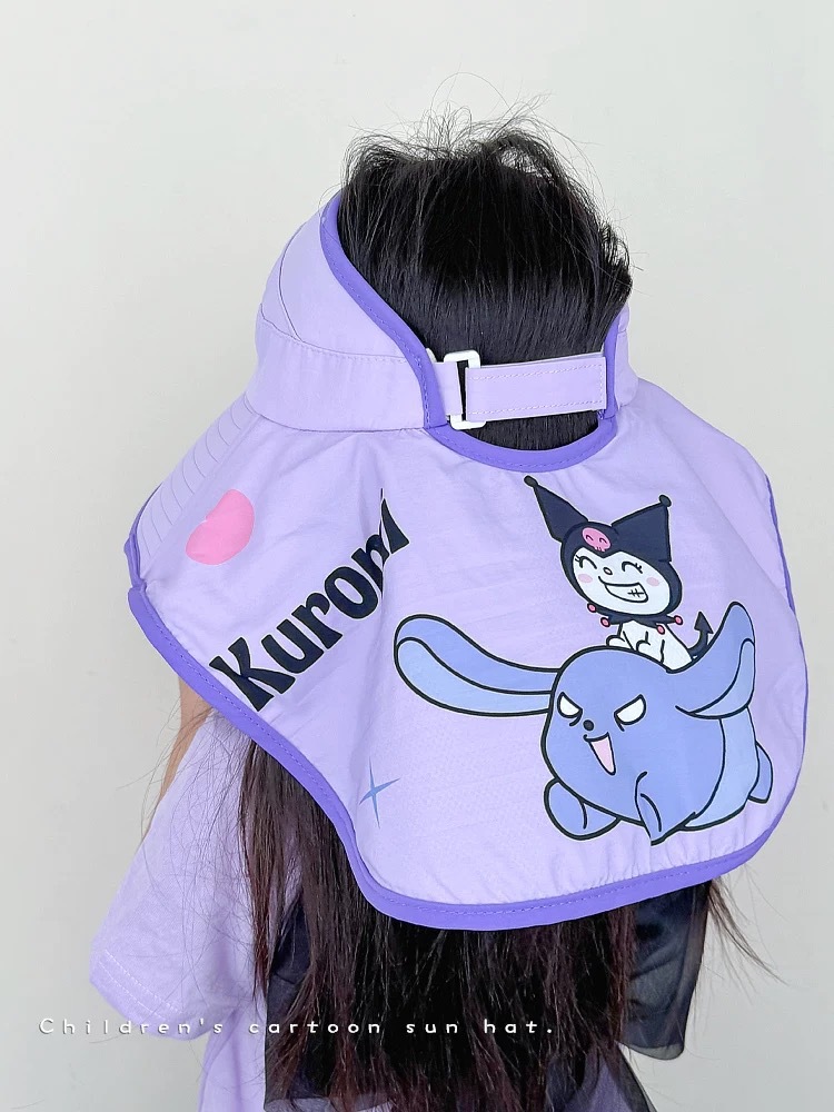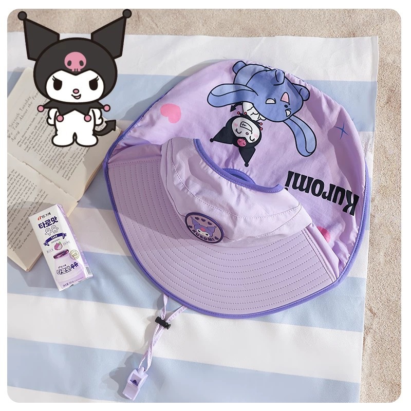 Sanrio Kuromi 소녀 태양 모자 목도리 모자 어린이 모자 큰 챙 아기 여름 태양 보호 어부 모자스토어 가기