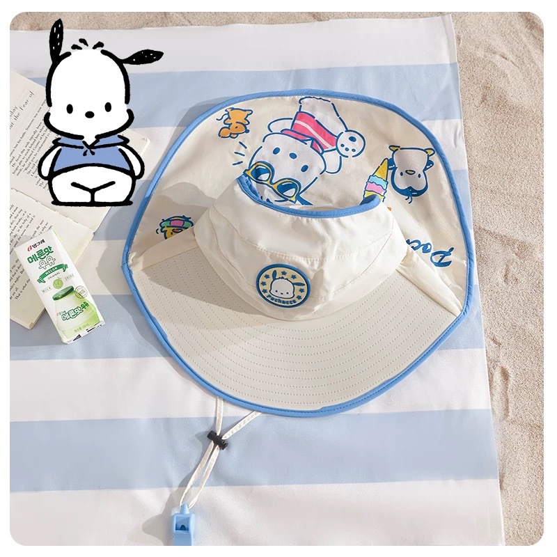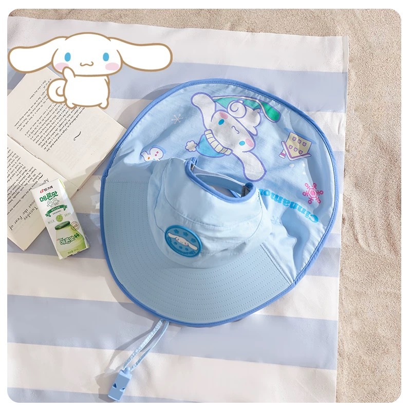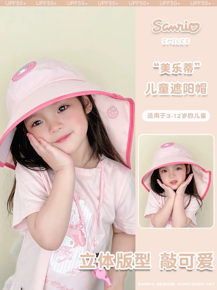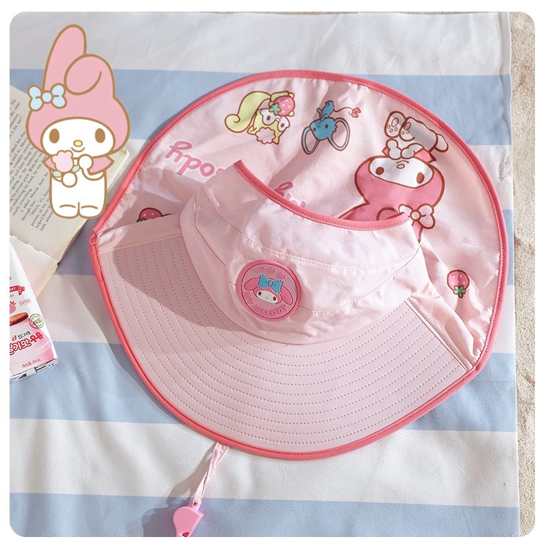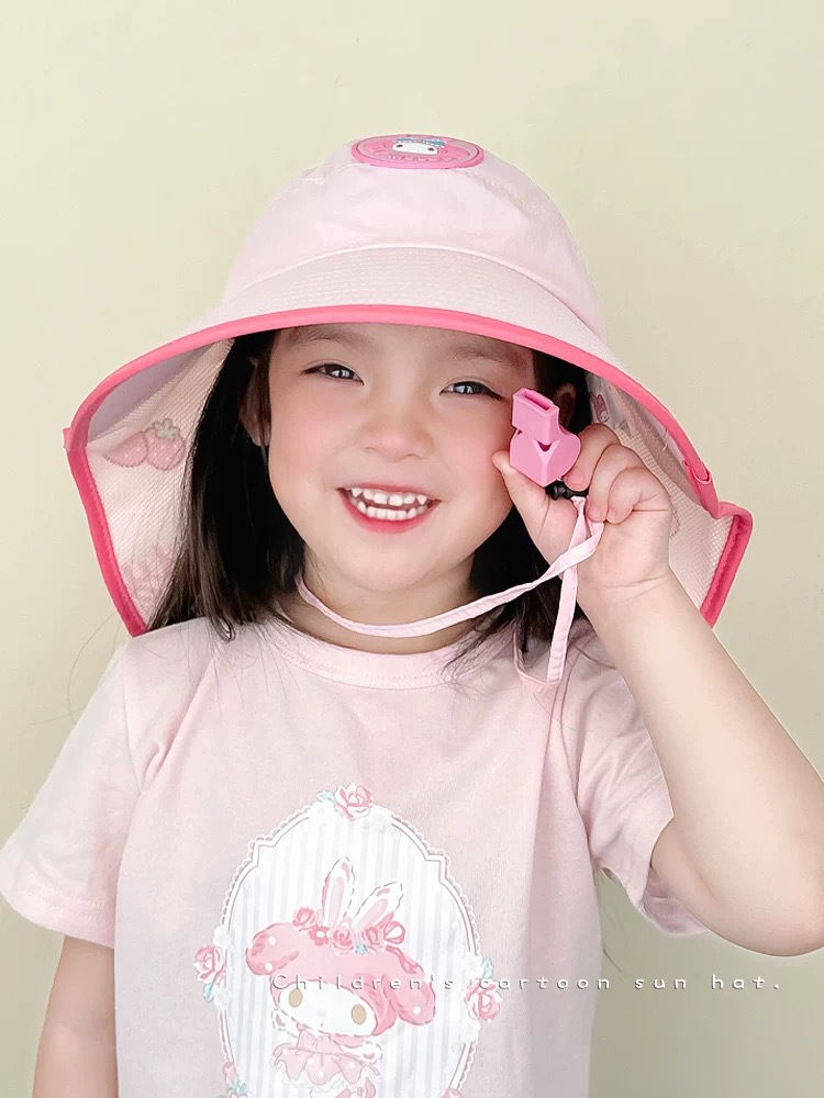 Sanrio Kuromi 소녀 태양 모자 목도리 모자 어린이 모자 큰 챙 아기 여름 태양 보호 어부 모자스토어 가기