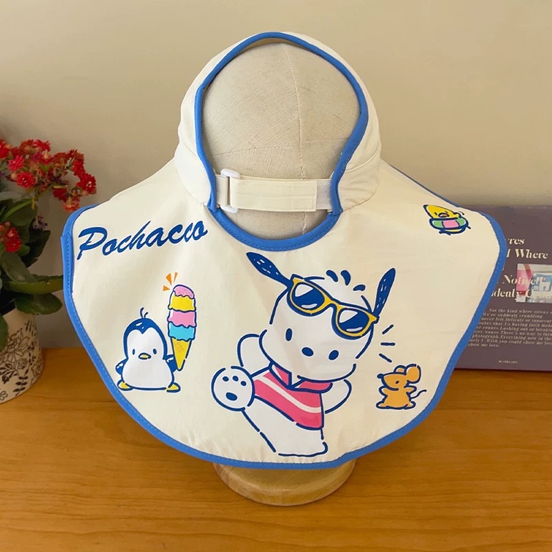 Sanrio Kuromi 소녀 태양 모자 목도리 모자 어린이 모자 큰 챙 아기 여름 태양 보호 어부 모자