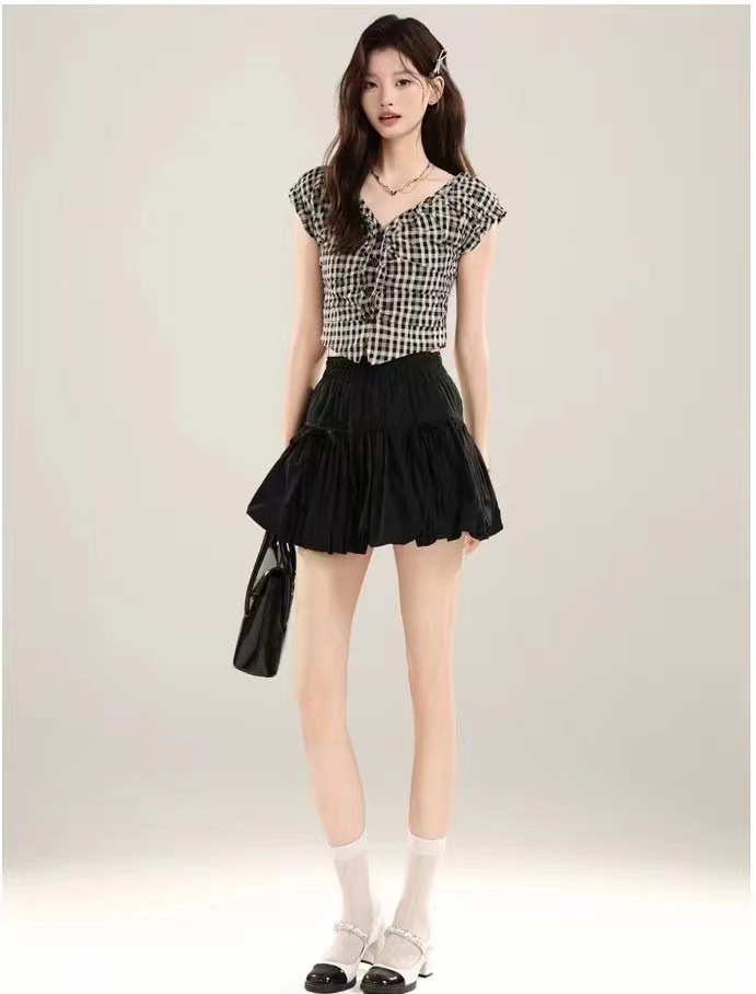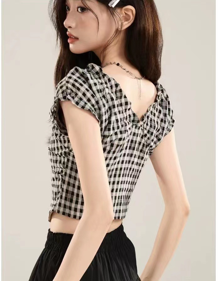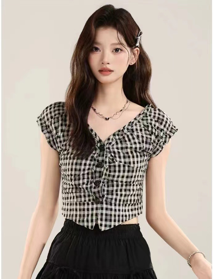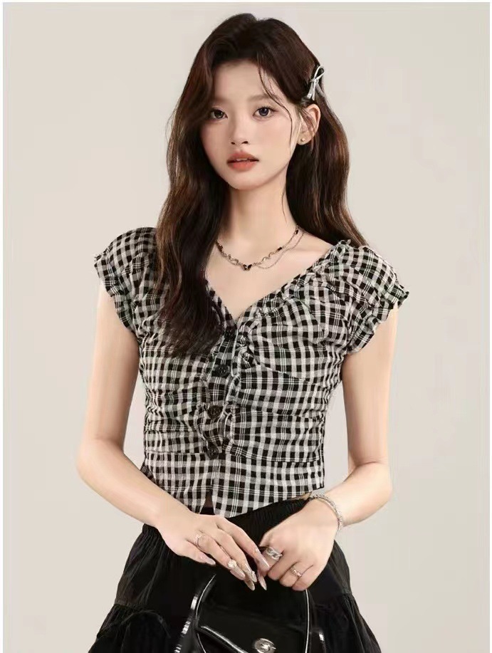격자 무늬 민소매 셔츠 여성 여름 새로운 프랑스 스타일 독특한 격자 무늬 탑 디자인 감각 니쉬 슬리밍 민소매 작은 셔츠스토어 가기