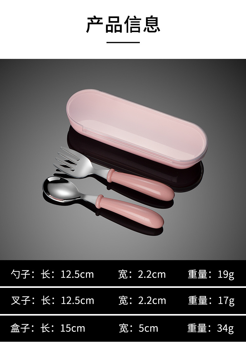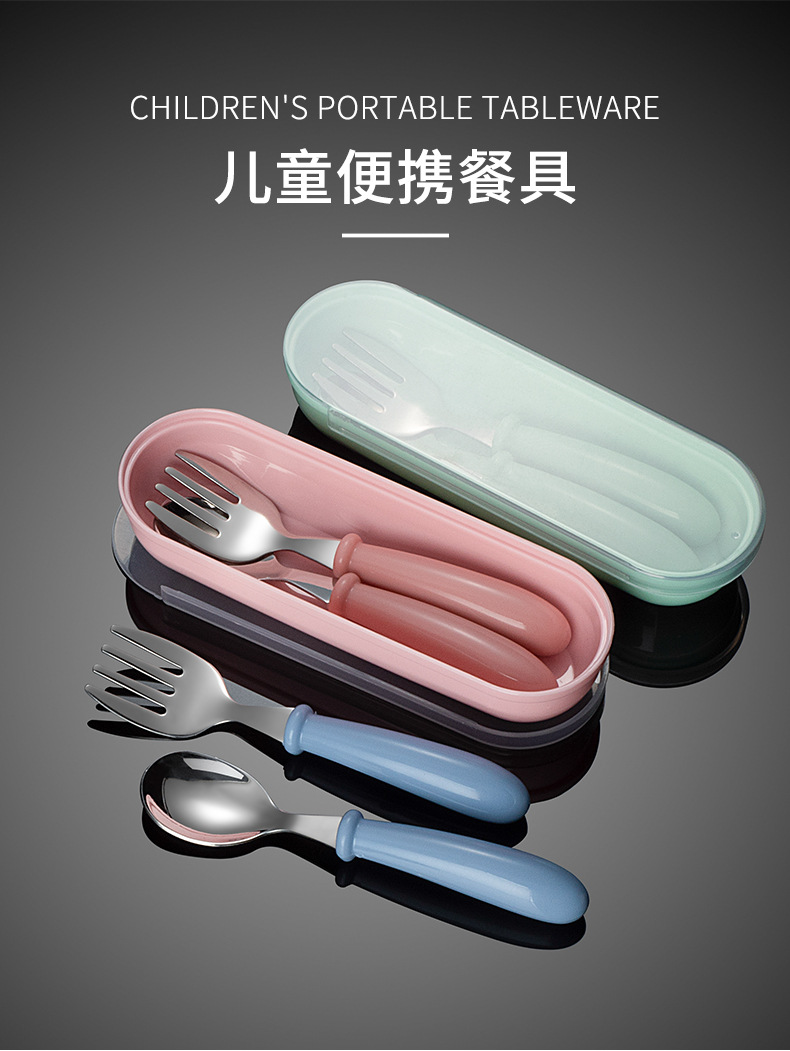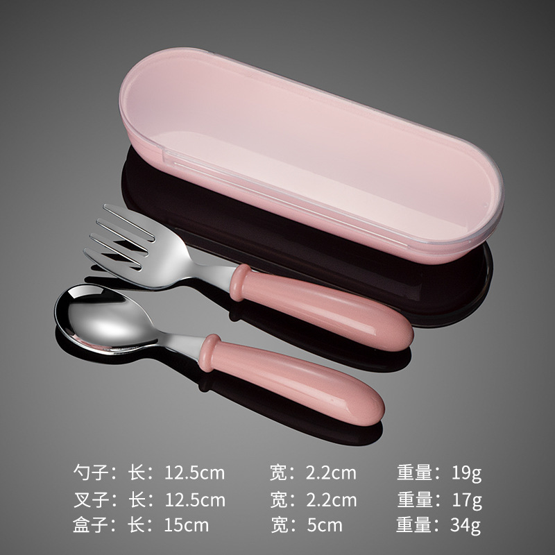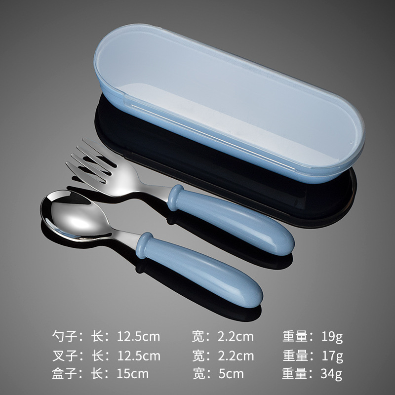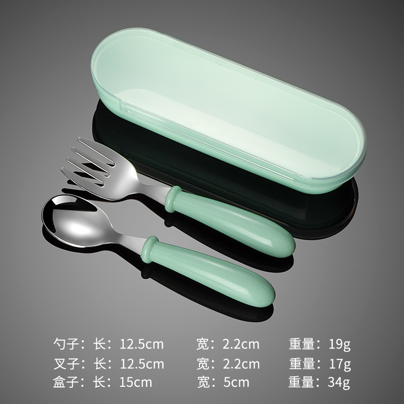 304 스테인레스 스틸 어린이 식기 숟가락 포크 박스 3 피스 세트 아기 자체 수유 보완 식품 포크 스푼 훈련 스푼