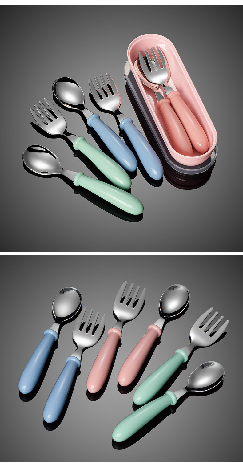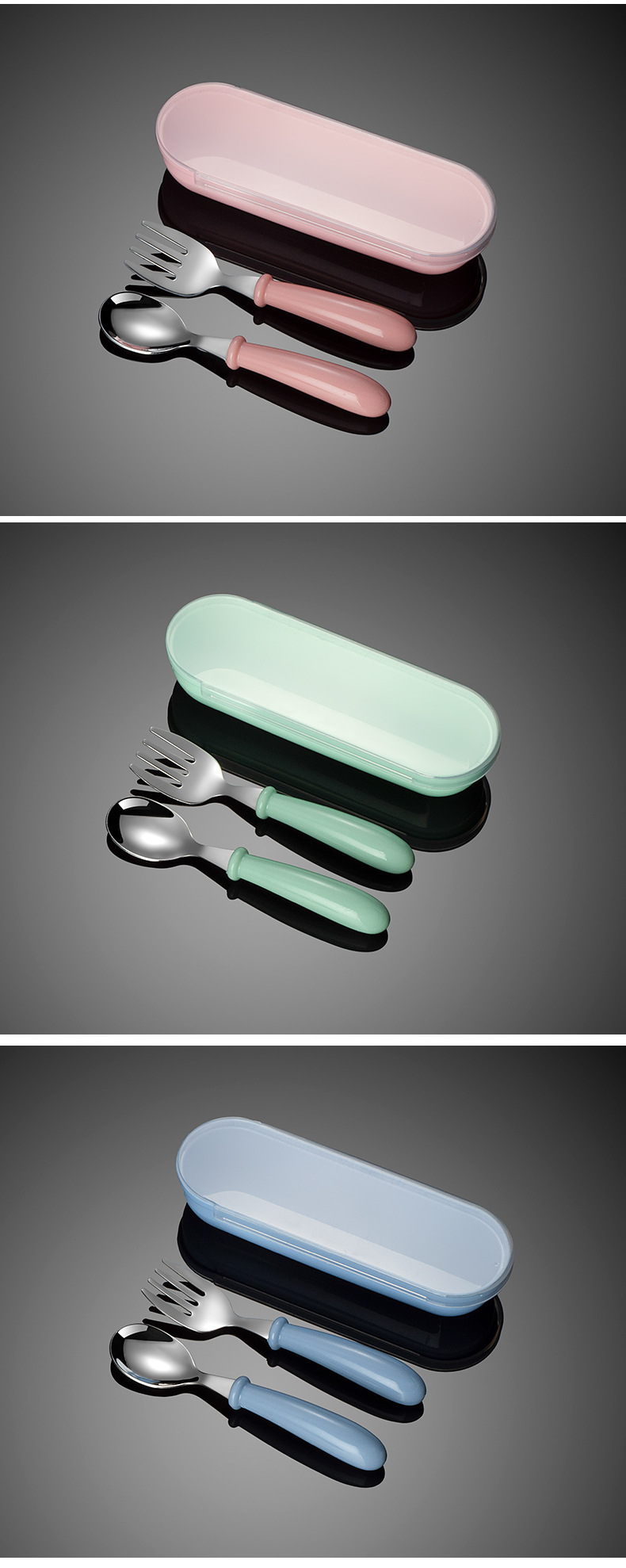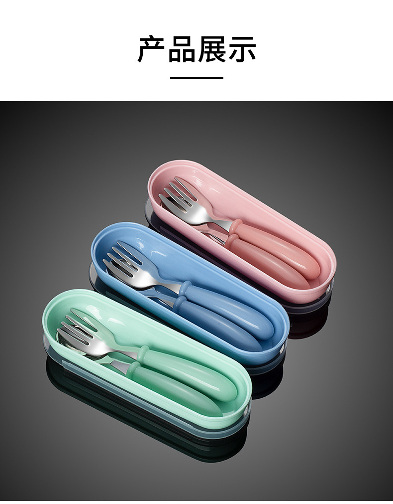 304 스테인레스 스틸 어린이 식기 숟가락 포크 박스 3 피스 세트 아기 자체 수유 보완 식품 포크 스푼 훈련 스푼