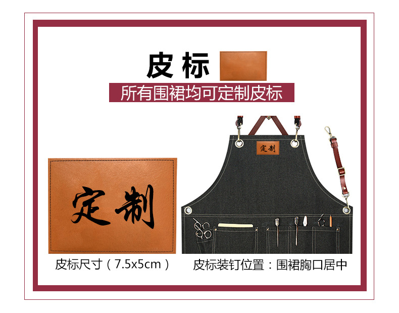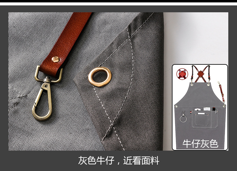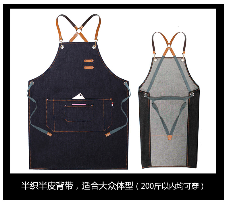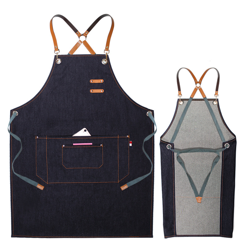 Senyue 국경 간 데님 앞치마 맞춤 로고 인쇄 우유 차 가게 바리 스타 이발소 남성 및 여성 작업복