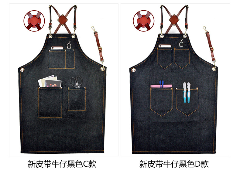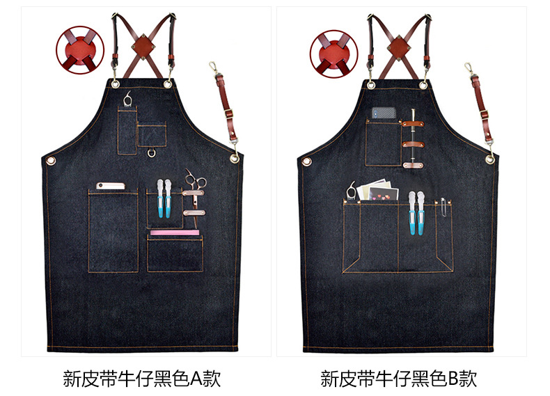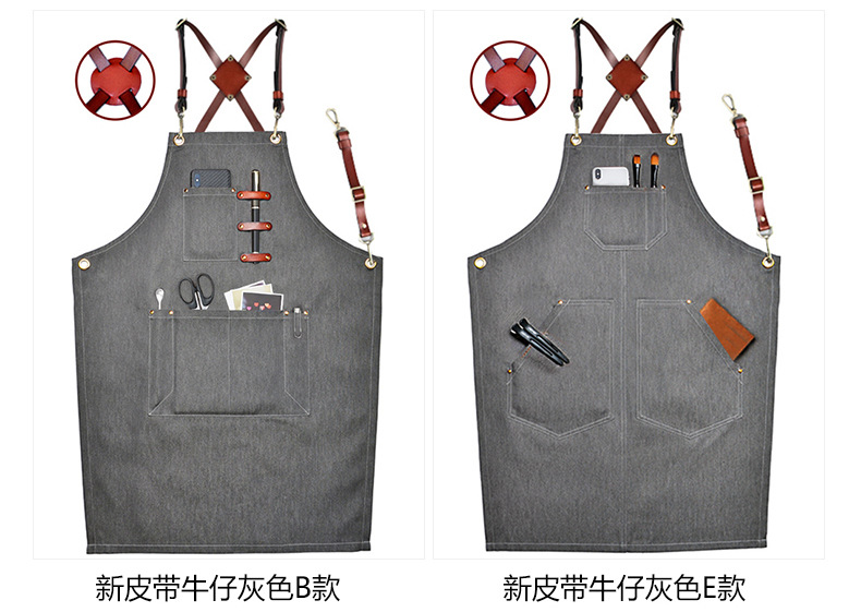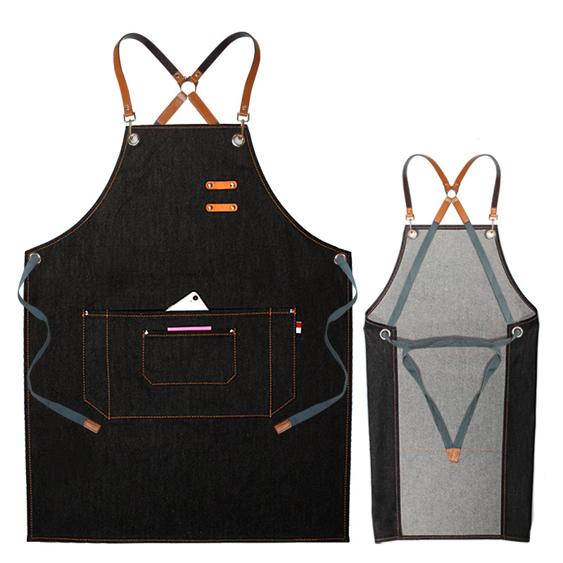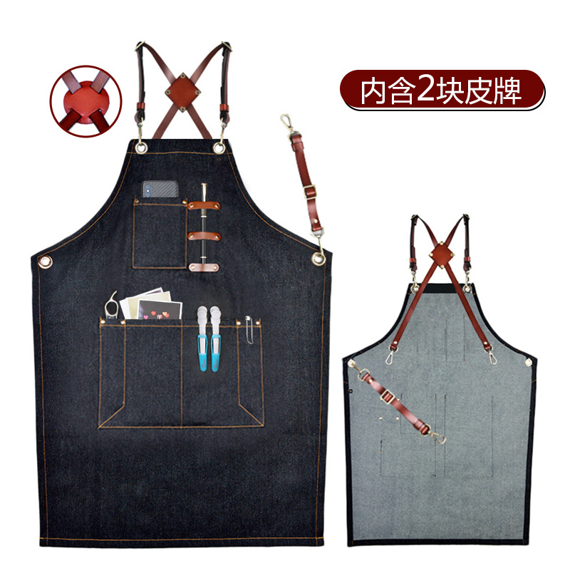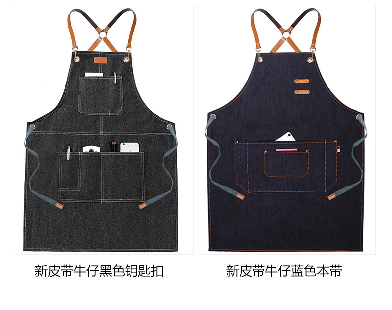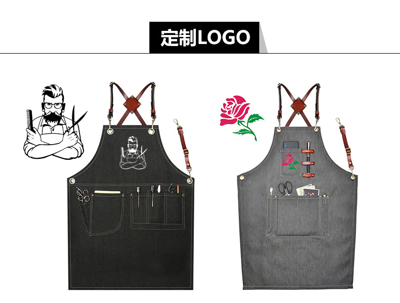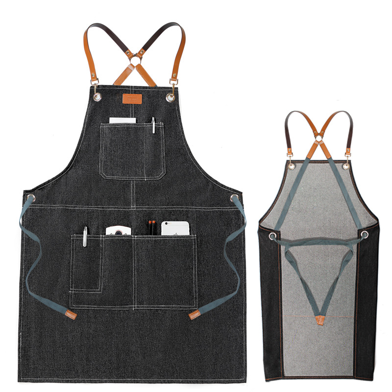 Senyue 국경 간 데님 앞치마 맞춤 로고 인쇄 우유 차 가게 바리 스타 이발소 남성 및 여성 작업복스토어 가기