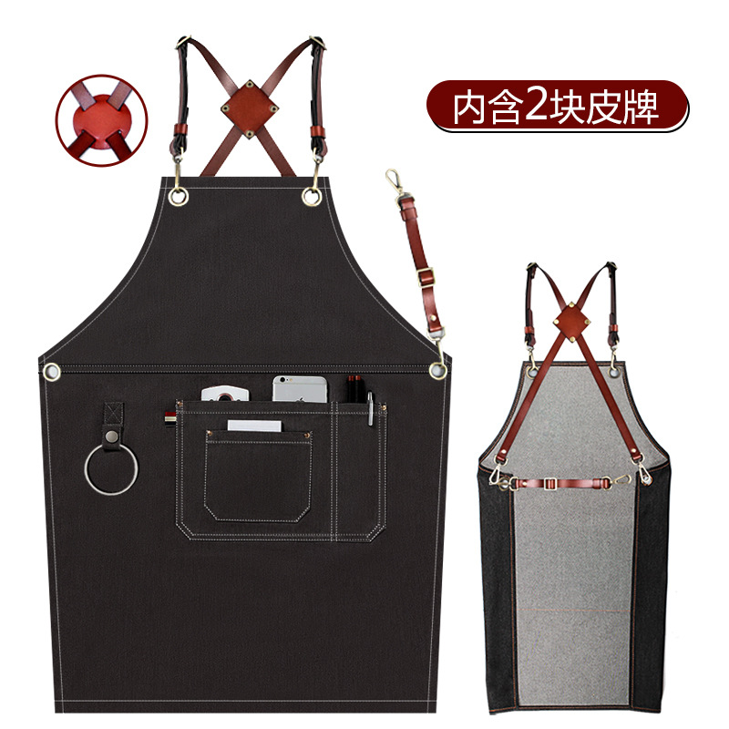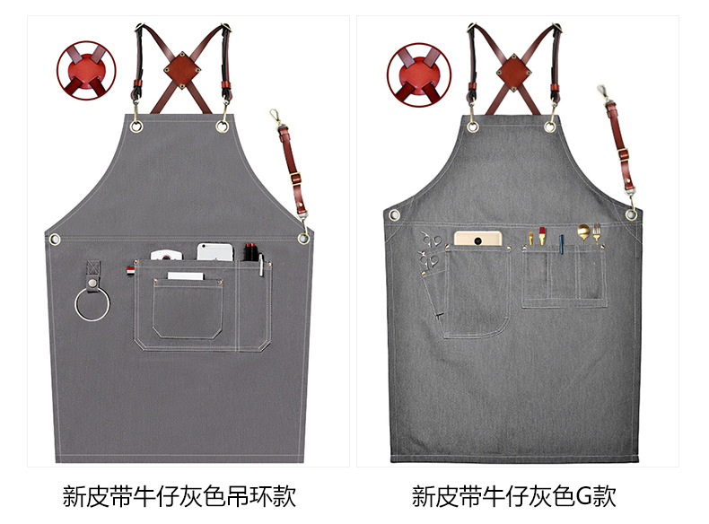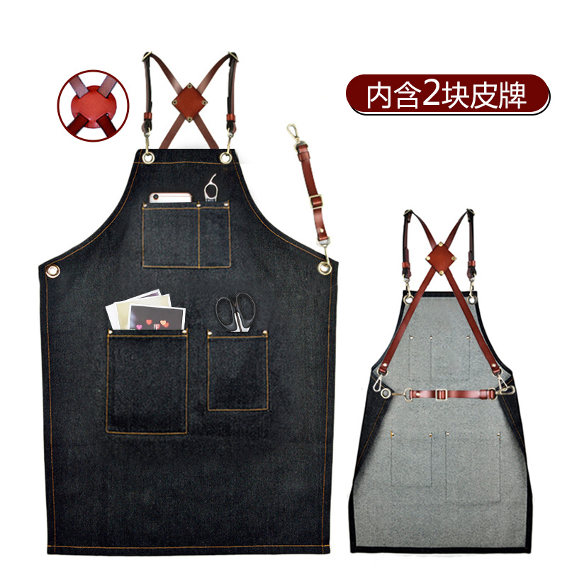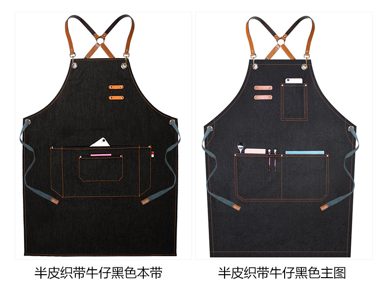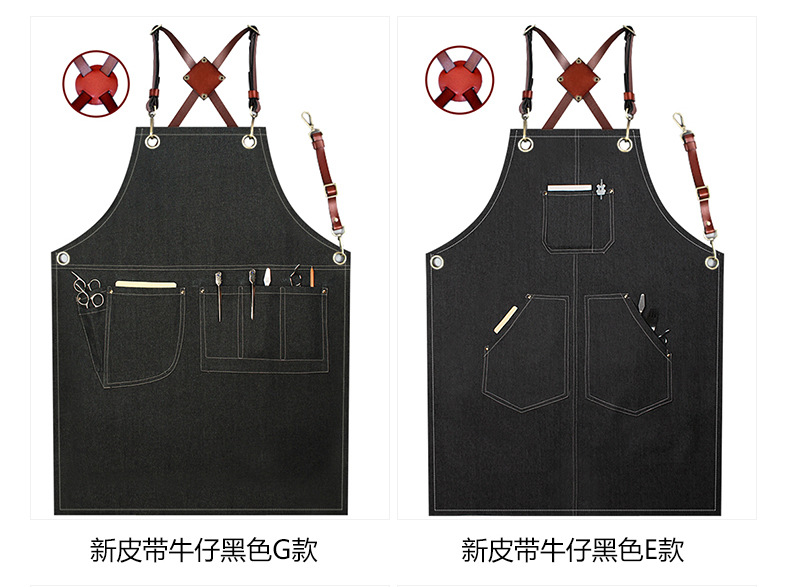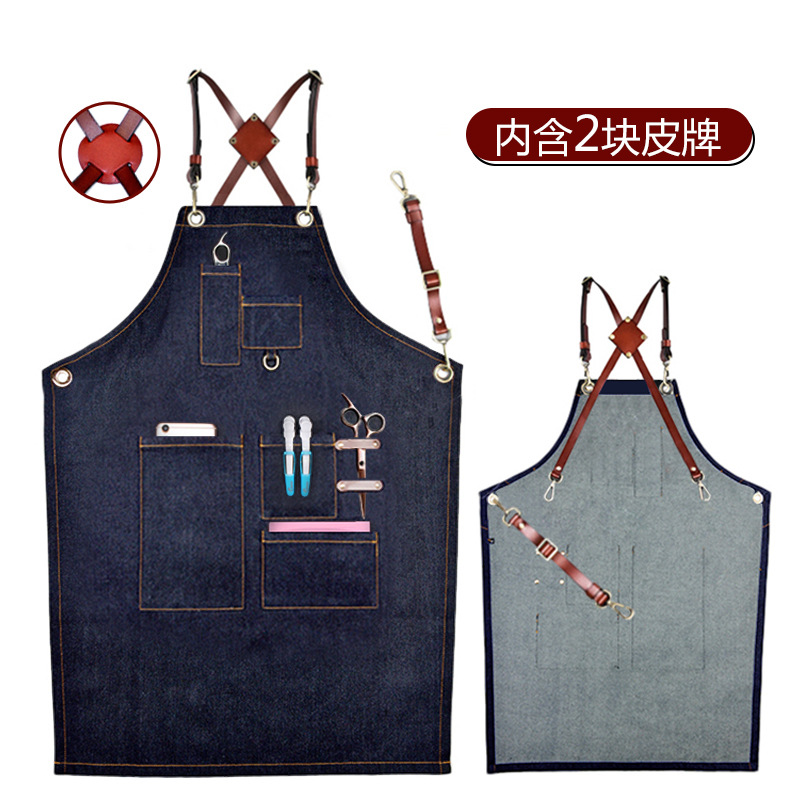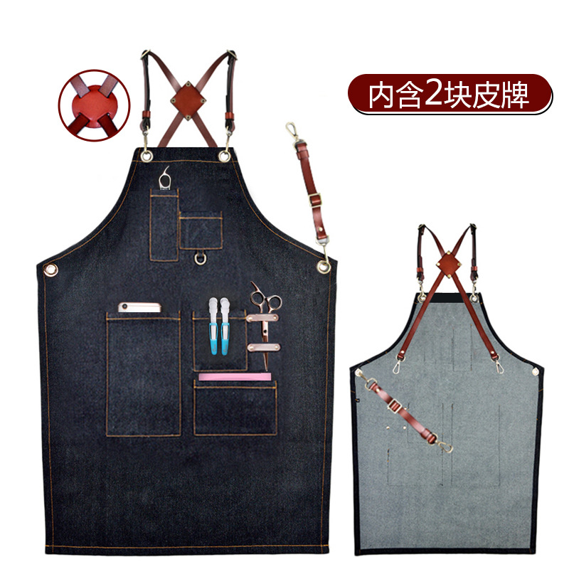 Senyue 국경 간 데님 앞치마 맞춤 로고 인쇄 우유 차 가게 바리 스타 이발소 남성 및 여성 작업복스토어 가기