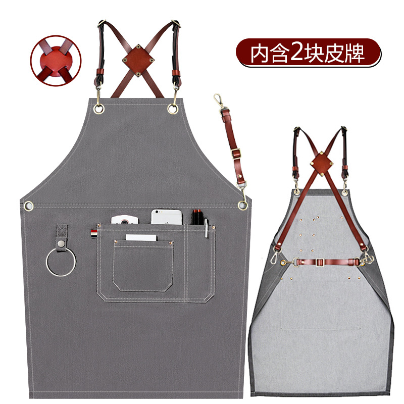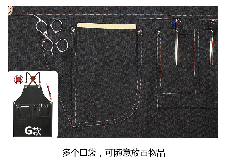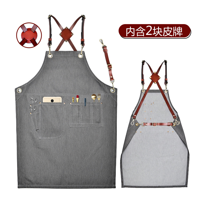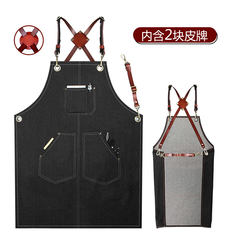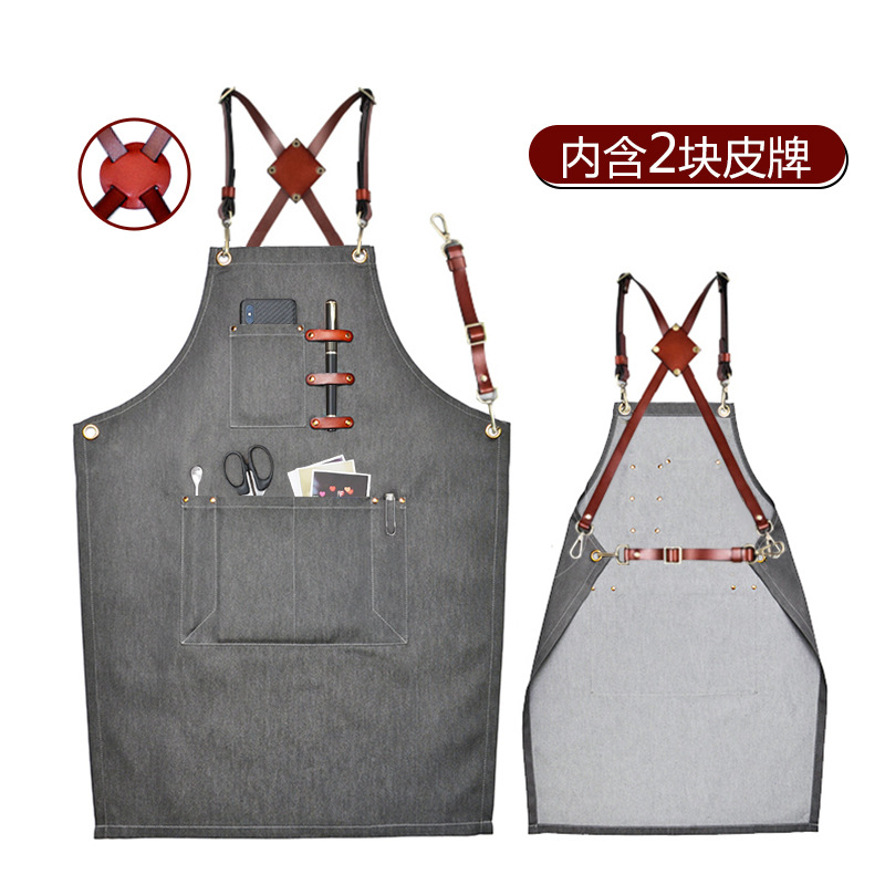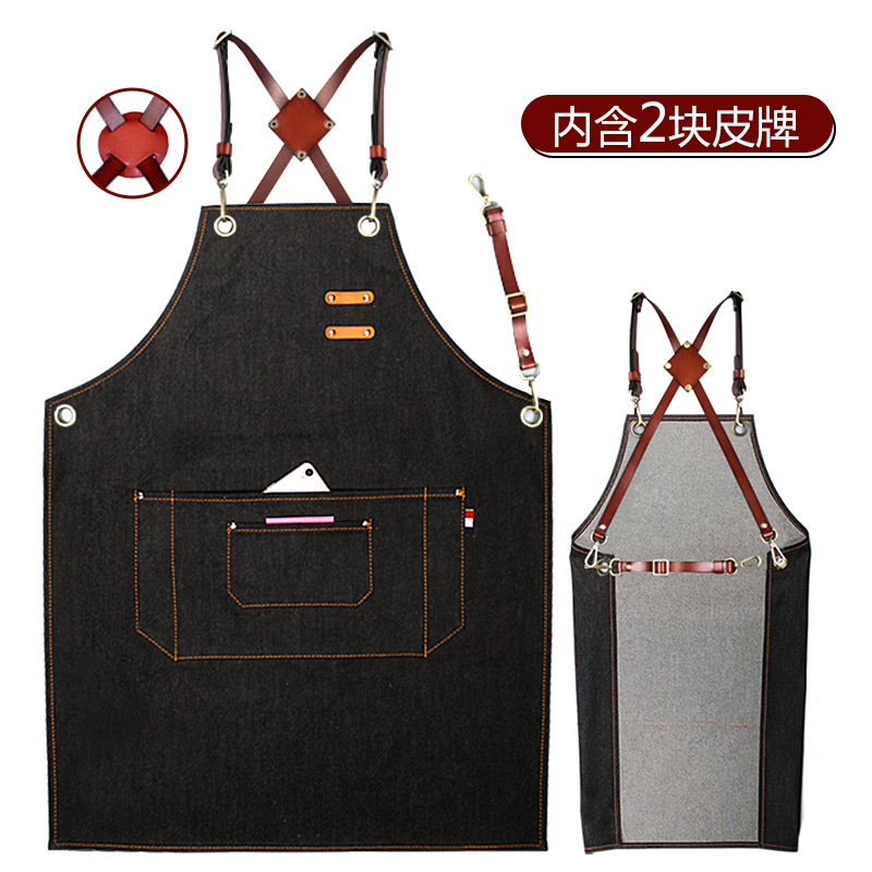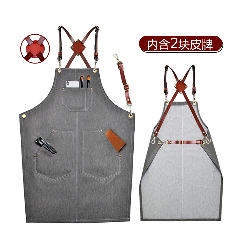 Senyue 국경 간 데님 앞치마 맞춤 로고 인쇄 우유 차 가게 바리 스타 이발소 남성 및 여성 작업복스토어 가기