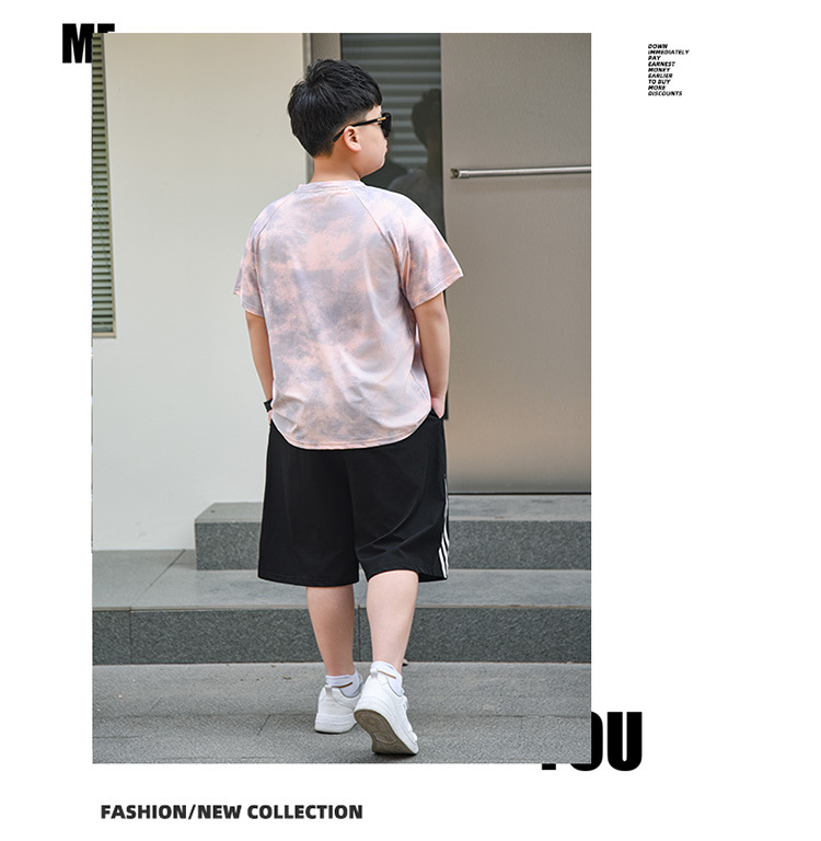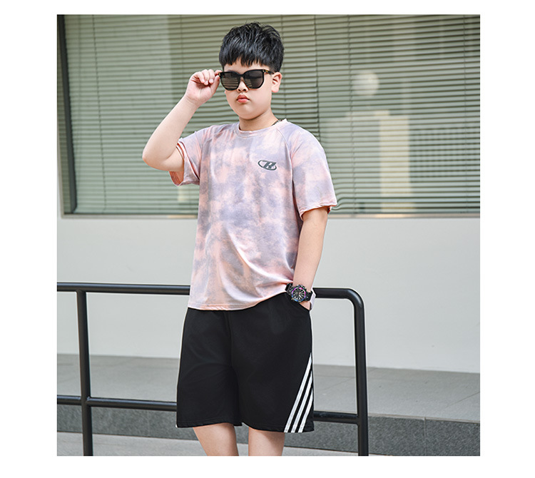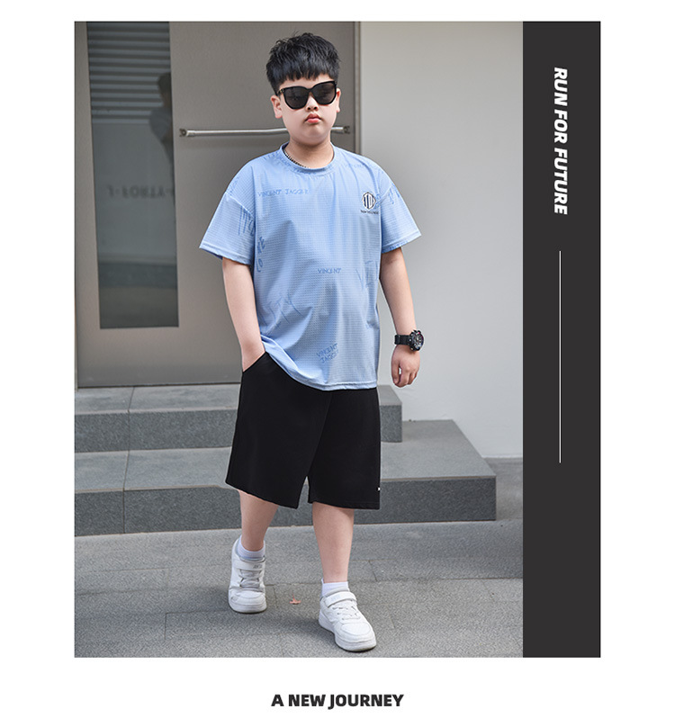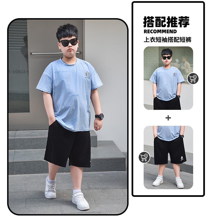 뚱뚱한 소년 아이스 실크 반팔 티셔츠, 중대형 소년 플러스 사이즈 속건성 짧은 티셔츠 대형 아동복 얇은 스웨트 셔츠