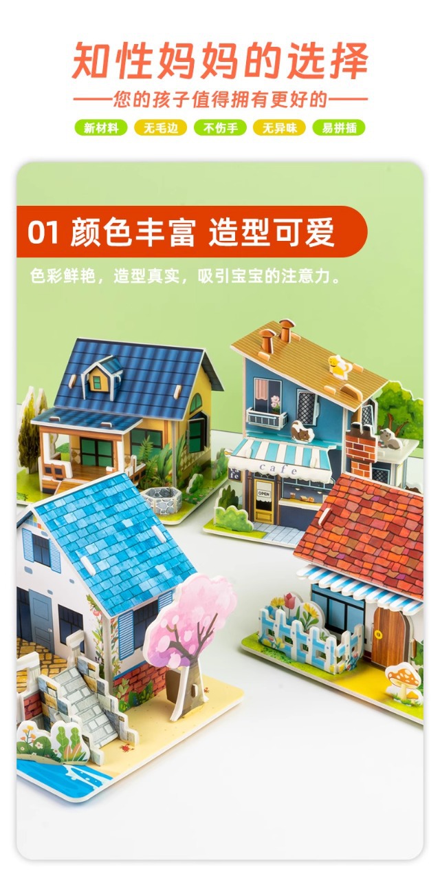 창의적인 3D 입체 퍼즐 학생 만화 DIY 수제 집 어린이 교육용 장난감 국경일 선물 도매스토어 가기