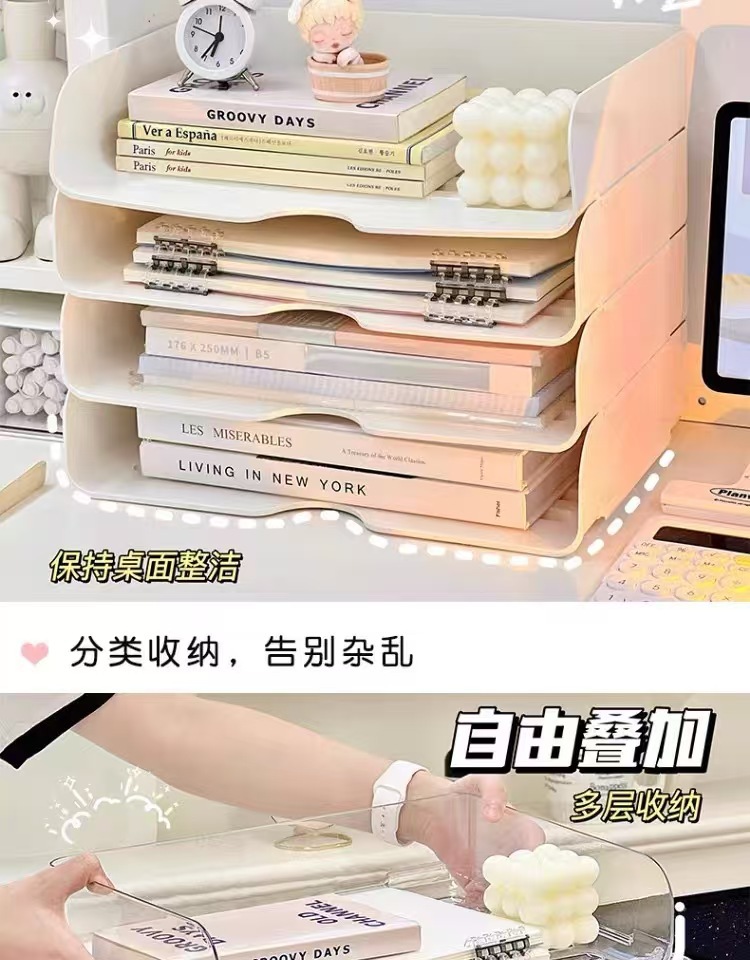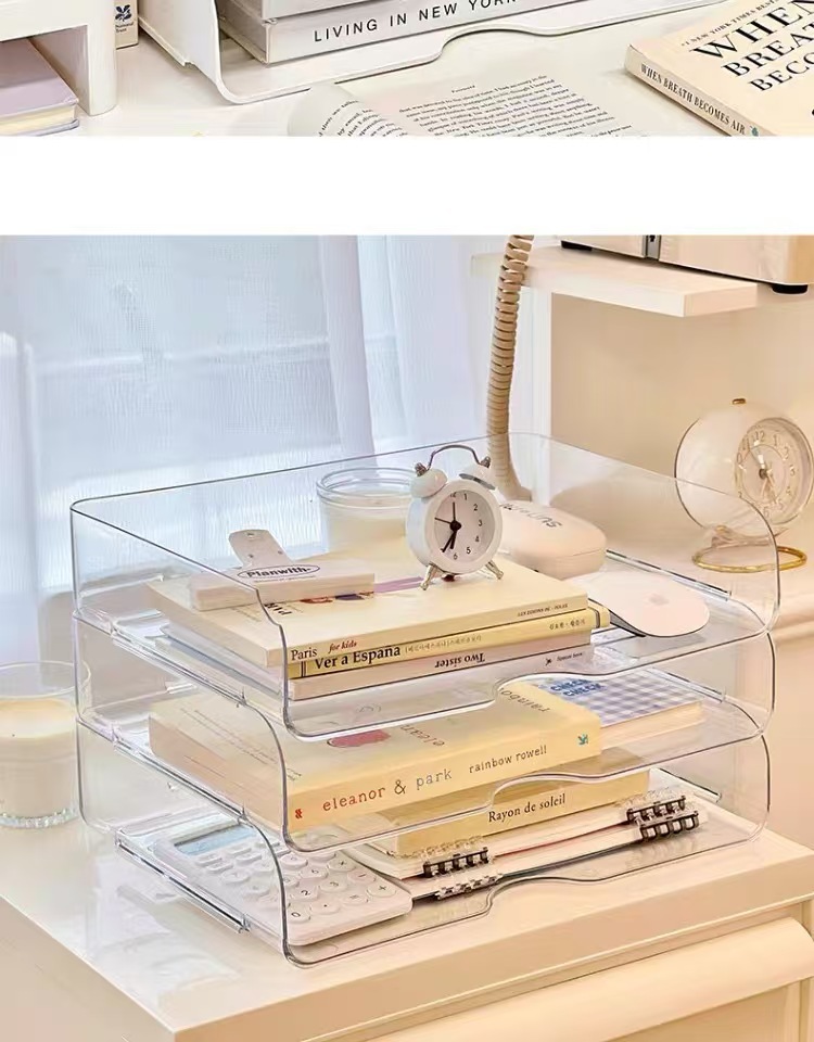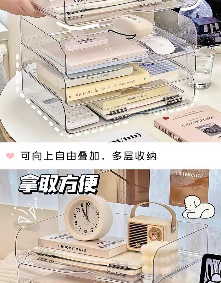 투명한 데스크탑 스토리지 박스 사무실 파일 스토리지 랙 데스크 다층 문구 책 보관 바구니 역 유물