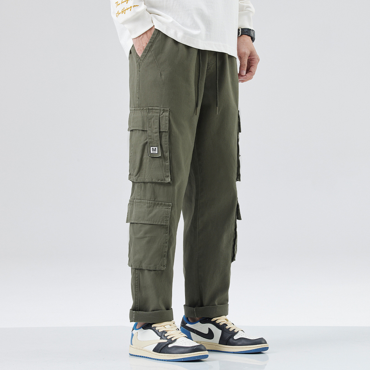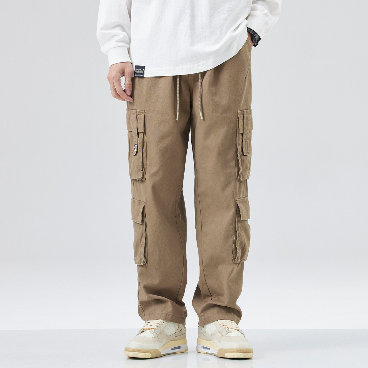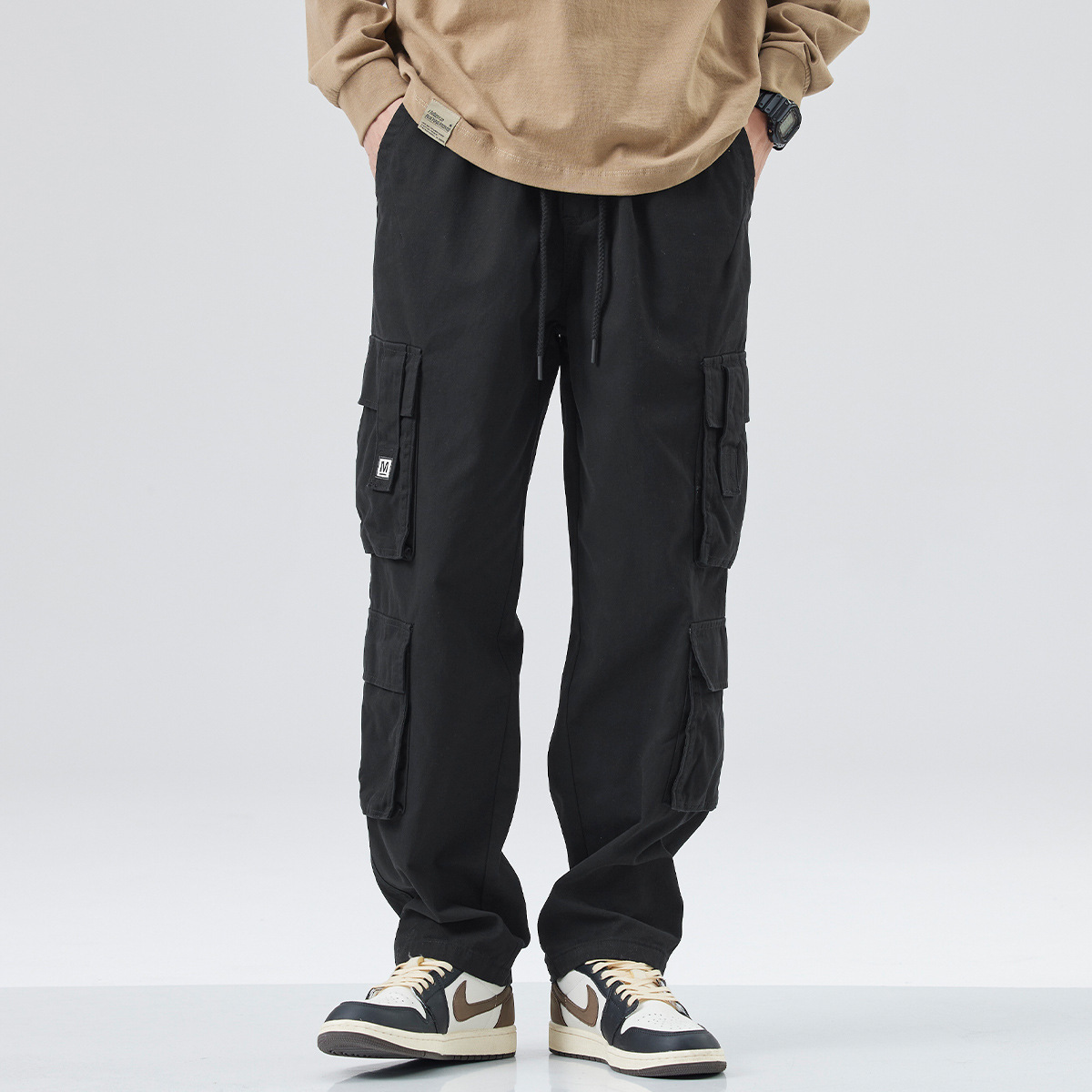 Hanska, 남성 봄 일본 패션 브랜드 블랙 루즈 스트레이트 대형 포켓 하이 스트리트 코튼 캐주얼 바지스토어 가기