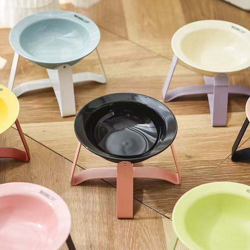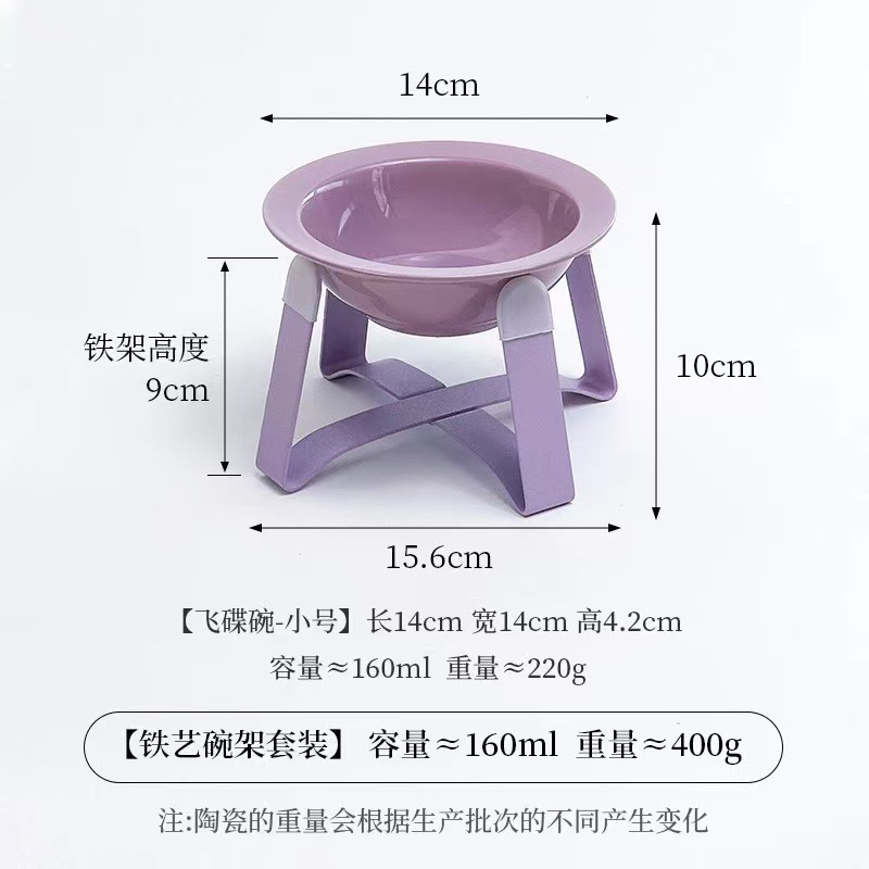 고양이 그릇 세라믹 철 랙 플라잉 접시 그릇 높은 발 보호 자궁 경부 척추 고양이 먹이 그릇 고양이 음식 분지 고양이 물 그릇 반대로 전복 고양이 분지