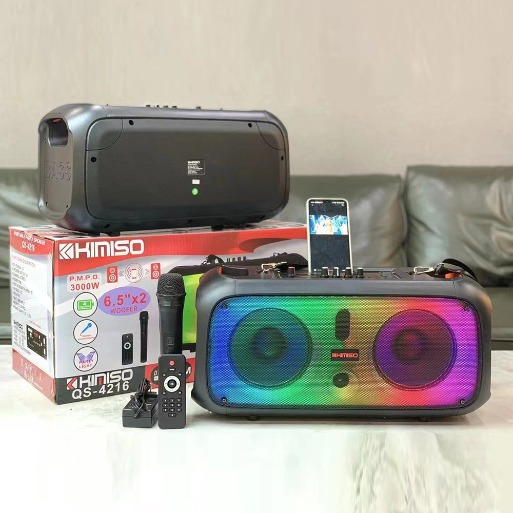 KIMISO 야외 스트랩 휴대용 블루투스 스피커 6.5inch 더블 스피커 컬러 조명 고출력 서브 우퍼 QS4216
