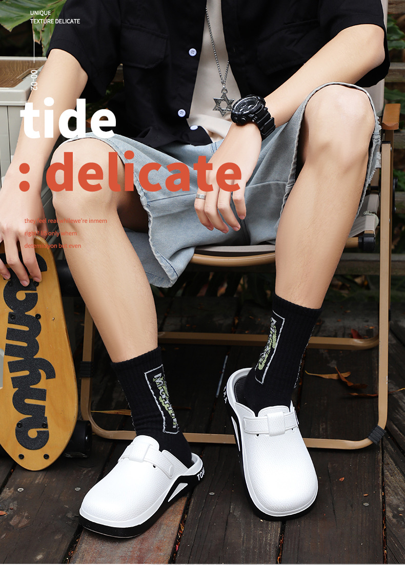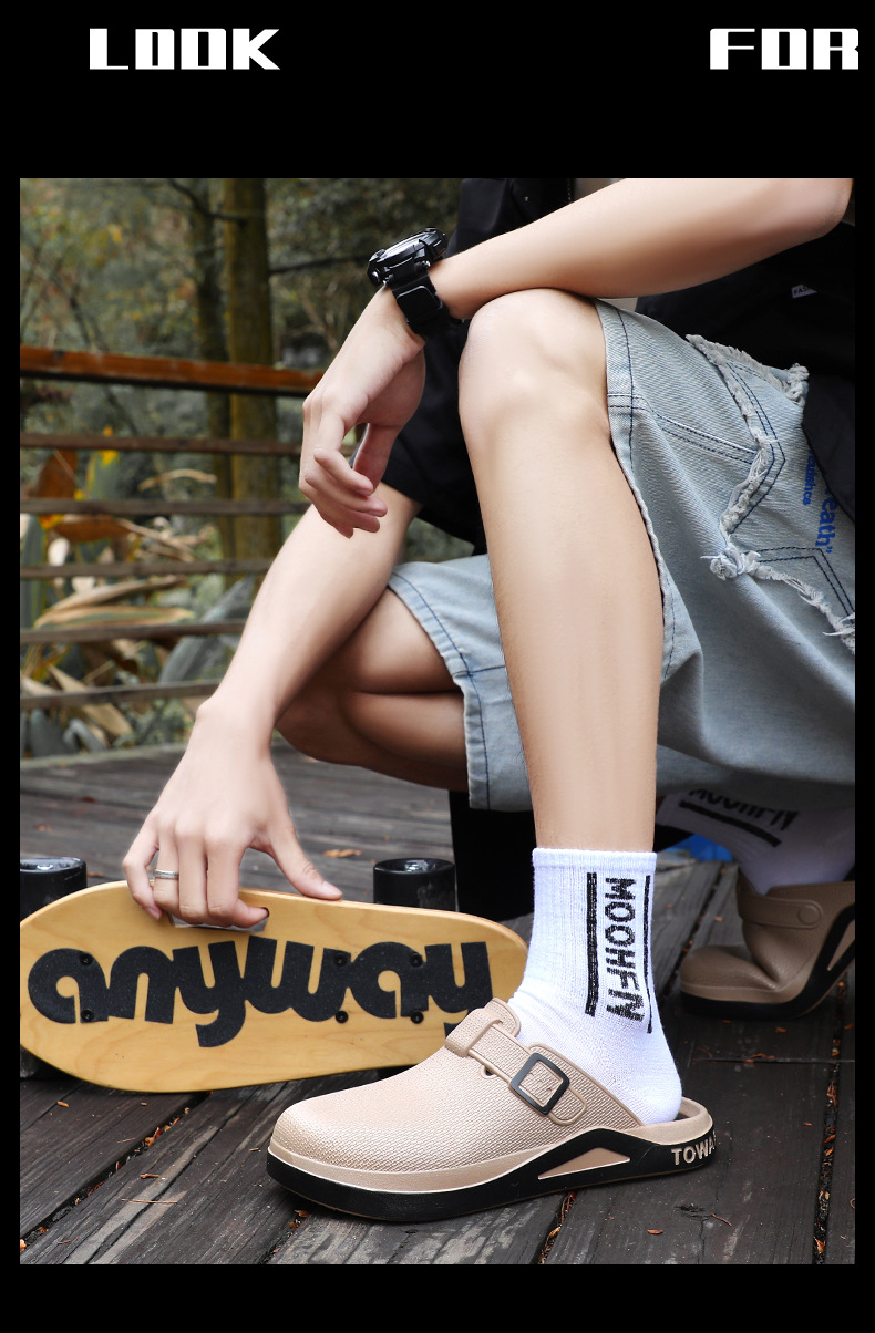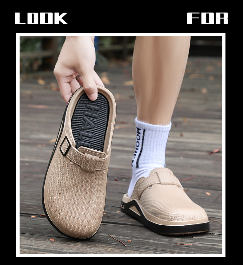 새로운 국경 남성 바오터우 슬리퍼 여름 패션 캐주얼 비치 슈즈 외부 샌들 플랫 홈 남성용 신발스토어 가기