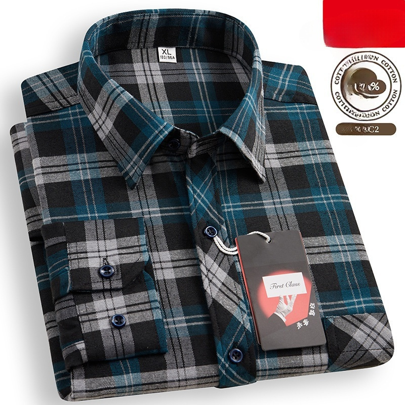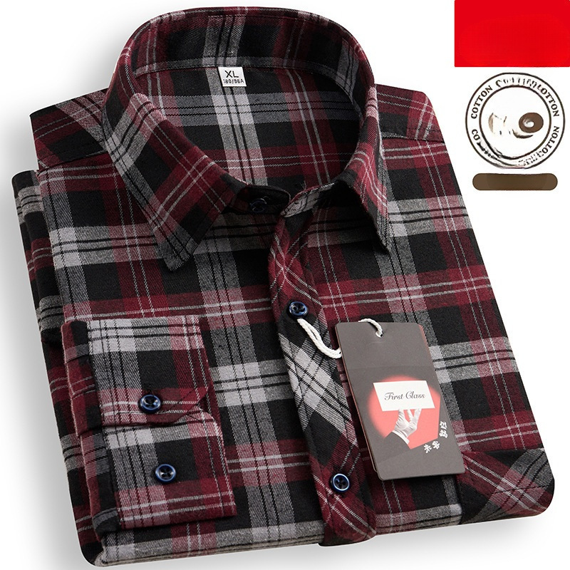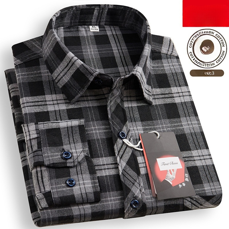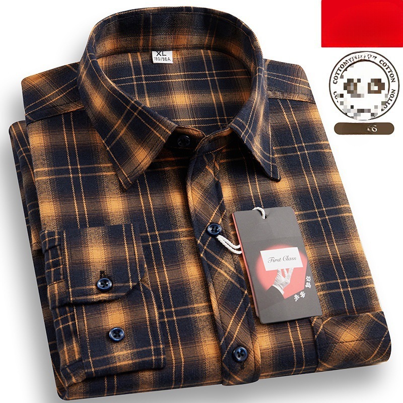 순면 중년 및 노인 남성 격자 무늬 긴팔 셔츠, 노소매 주름 방지 캐주얼 셔츠, 비즈니스 아빠 착용 얇은 도매스토어 가기
