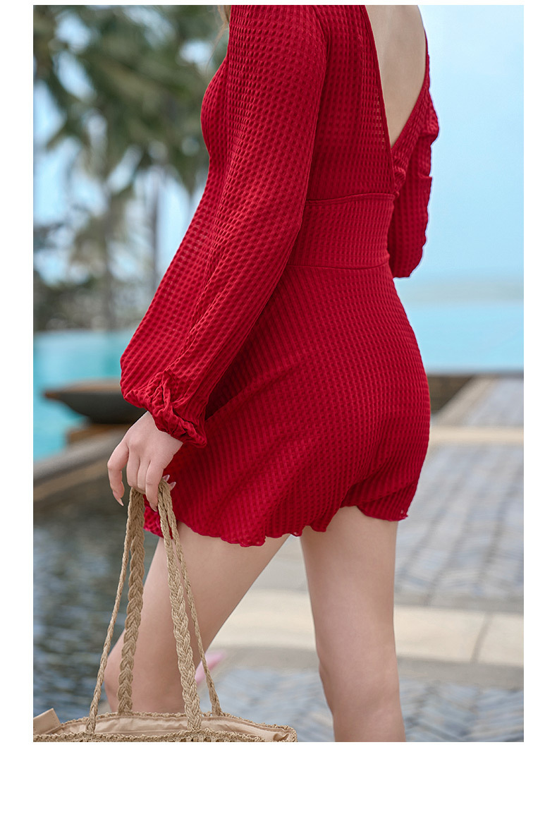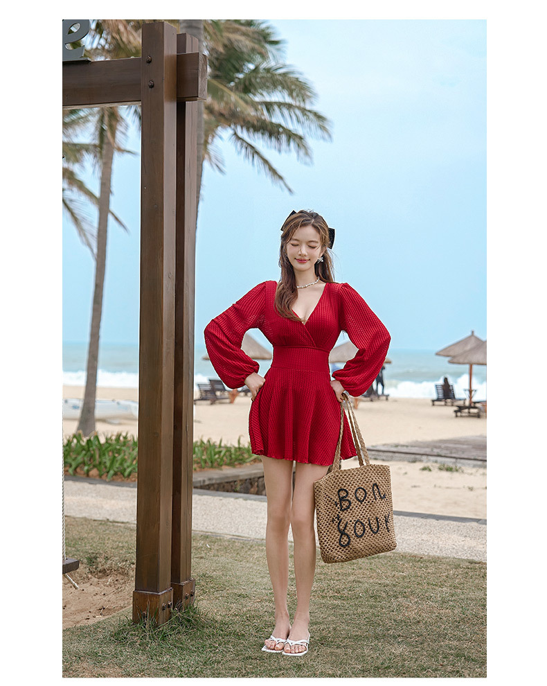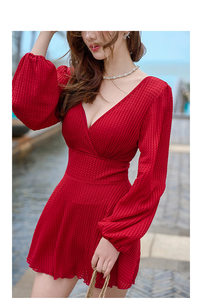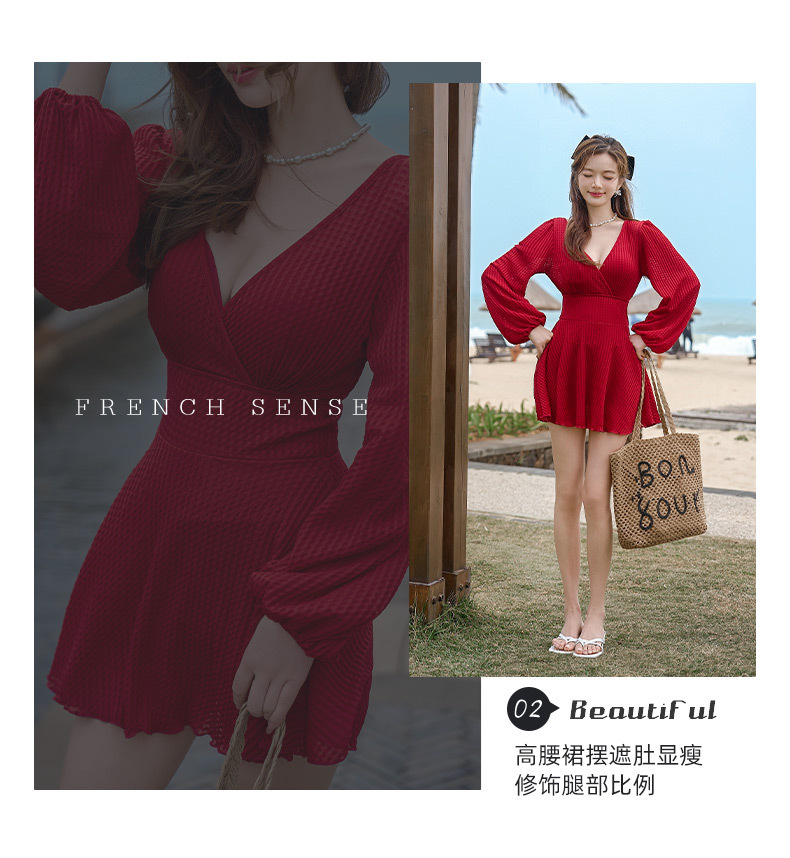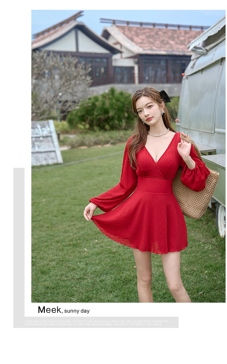 2025 Ginger 새로운 수영복 스커트 원피스 긴팔 작은 가슴 섹시 보수적 슬리밍 온천 여성 수영복