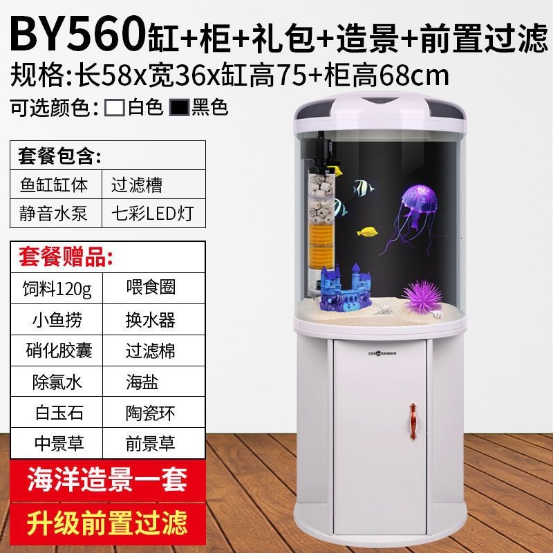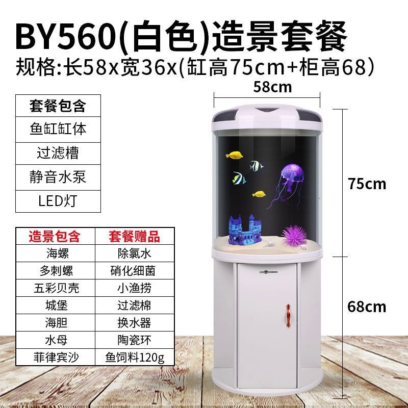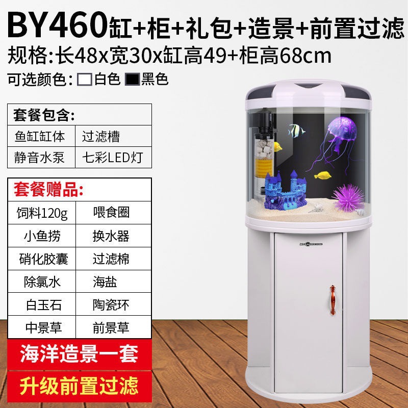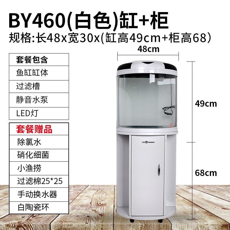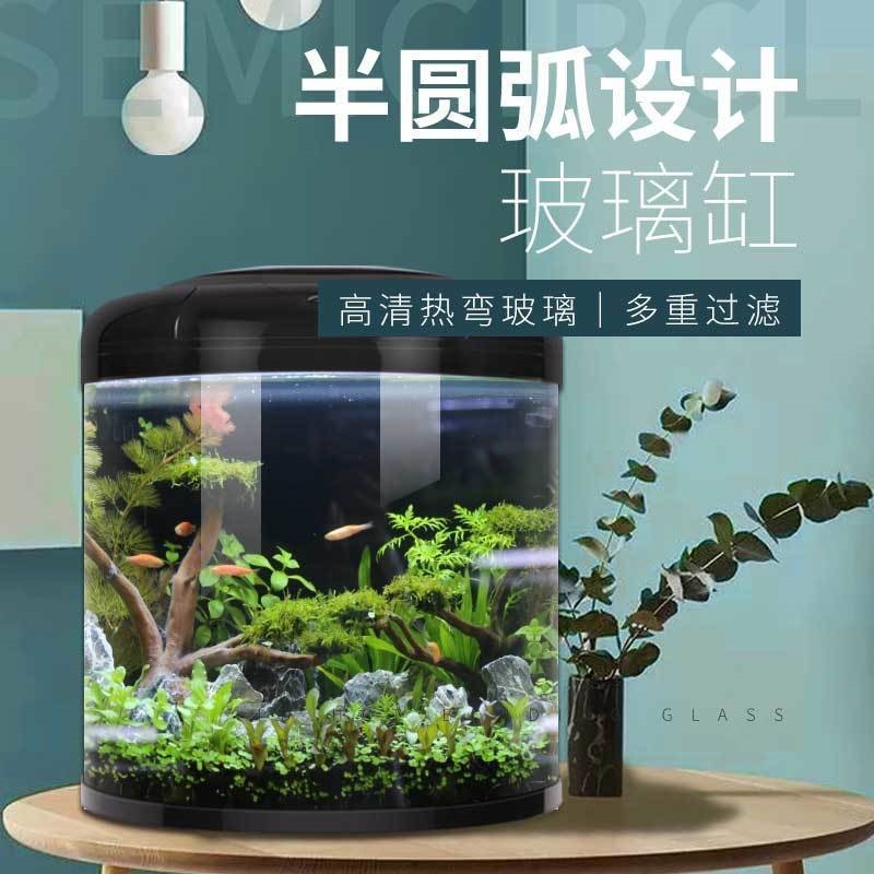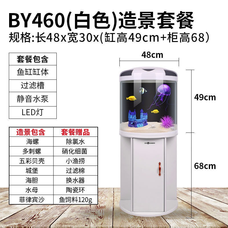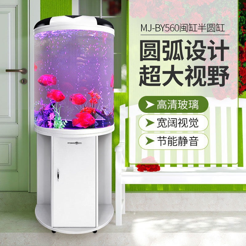 물고기 탱크 거실 반원형 수족관 원통 모양 작은 모양의 물없는 금 물고기 탱크 현대 바람 가구 바닥 캐비닛스토어 가기