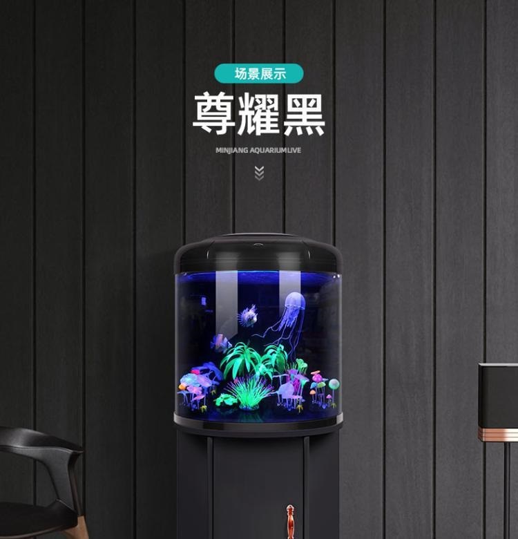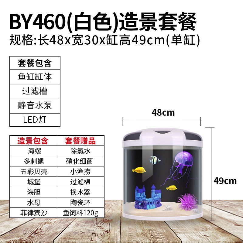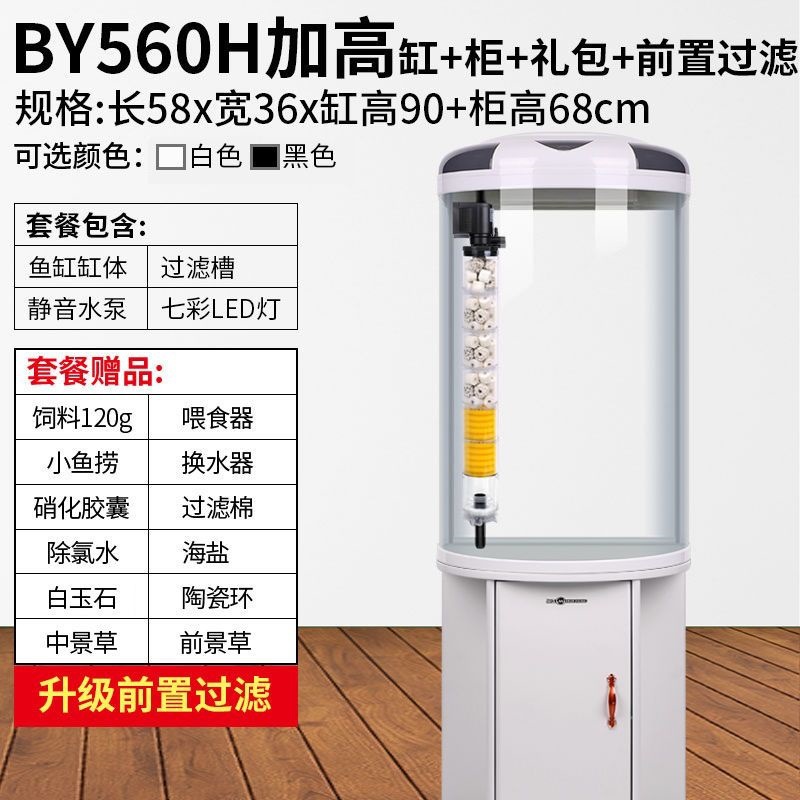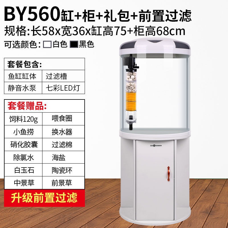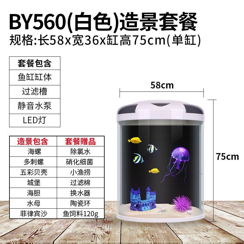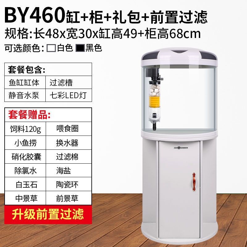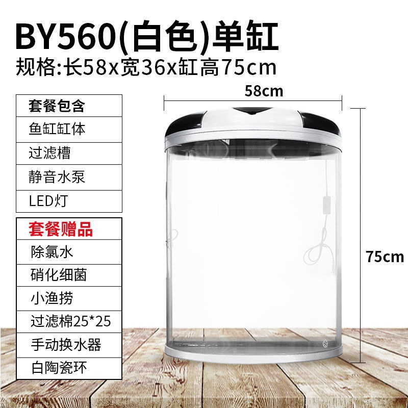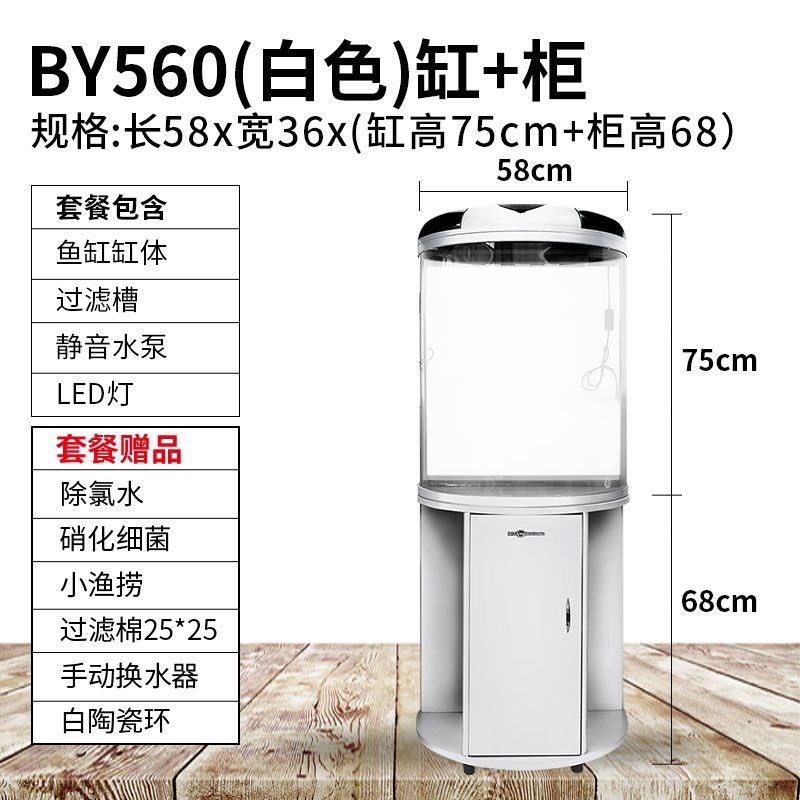 물고기 탱크 거실 반원형 수족관 원통 모양 작은 모양의 물없는 금 물고기 탱크 현대 바람 가구 바닥 캐비닛스토어 가기
