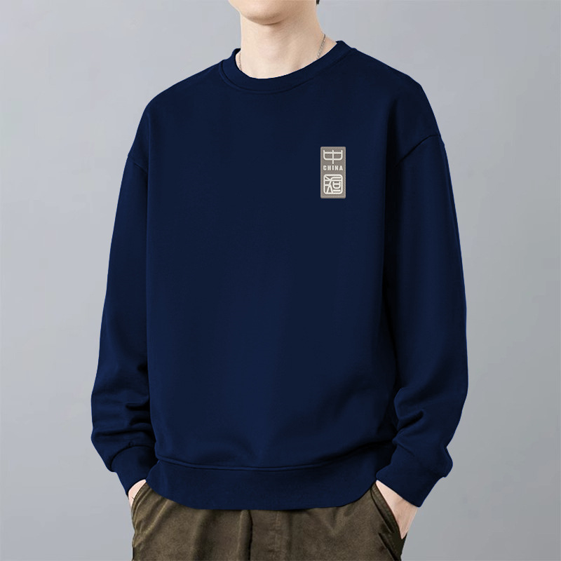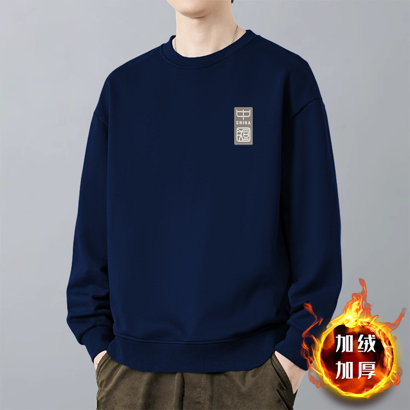 • 네이비 블루 라운드넥 스웨트셔츠 플러스 벨벳 스타일-9085 [GL]