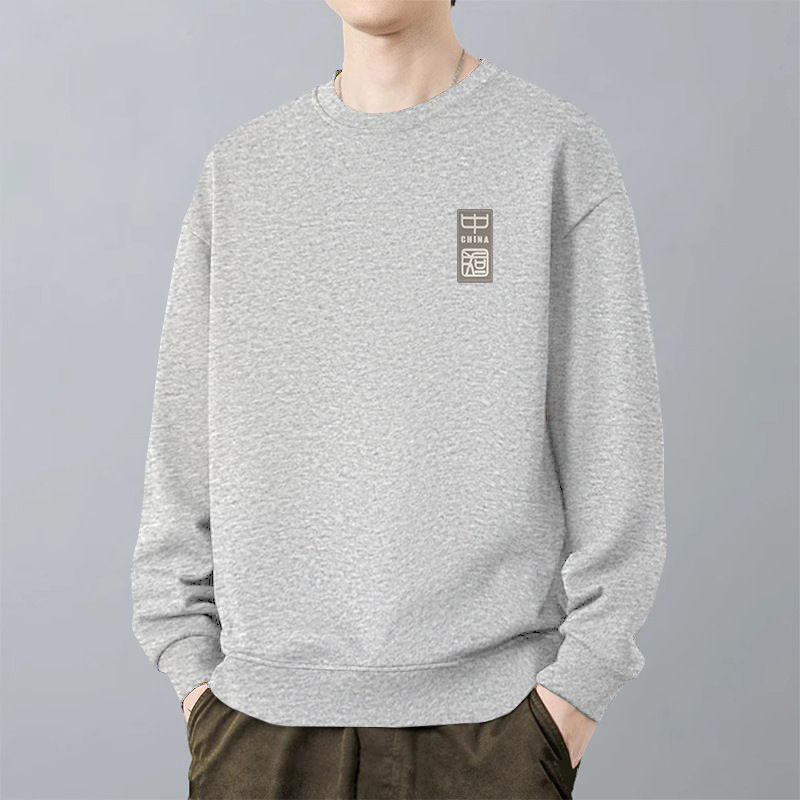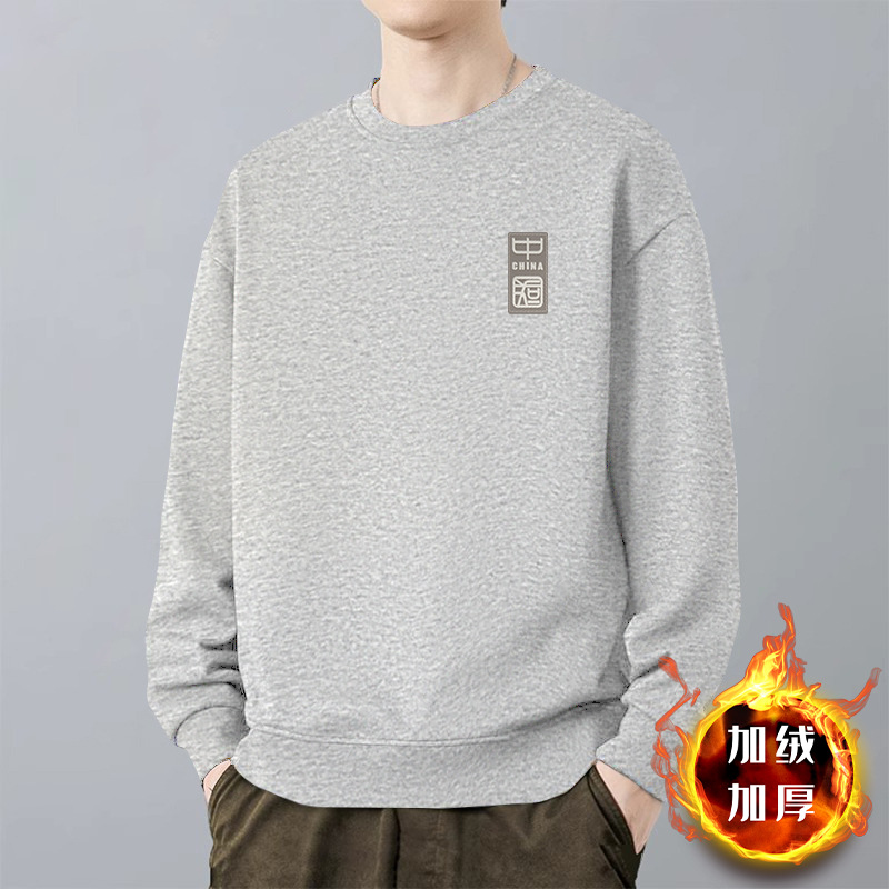 • 오트밀 그레이 라운드넥 스웨트셔츠 플러스 벨벳 스타일-9085 [GL]