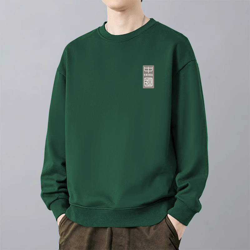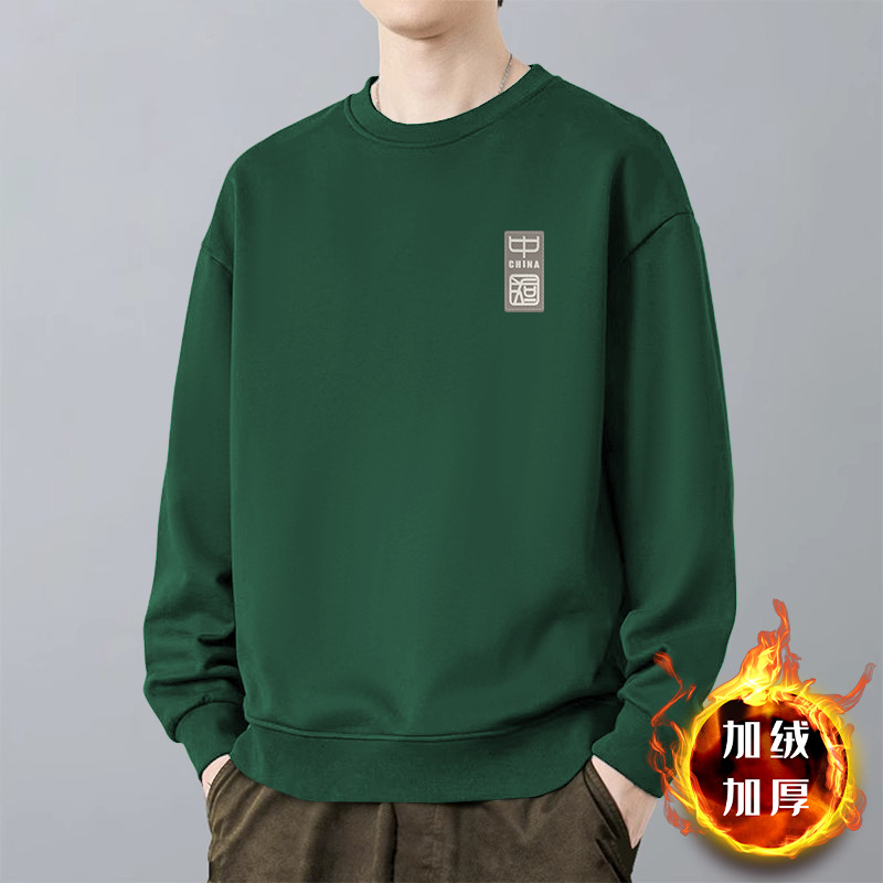 • 다크그린 라운드넥 스웨트셔츠 플러스 벨벳 스타일-9085 [GL]
