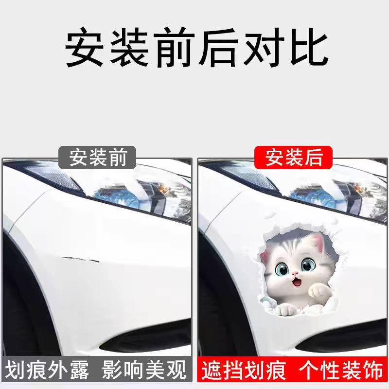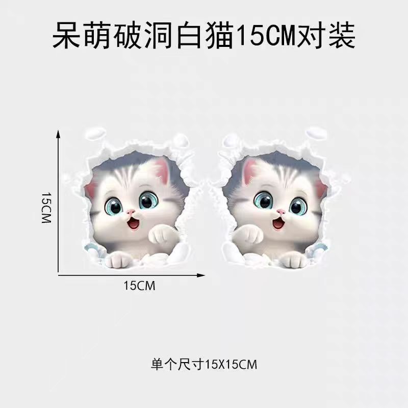 벙어리 귀여운 구멍 흰 고양이 바디 앞 유리 장식 스크래치 스티커 만화 귀여운 전기 자동차 스티커 자동차 스티커스토어 가기
