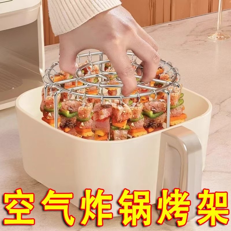 에어 프라이어 그릴 가정용 오븐 행잉 스토브 랙 두꺼운 스테인레스 스틸 플립 프리 수직 바베큐 꼬치 랙