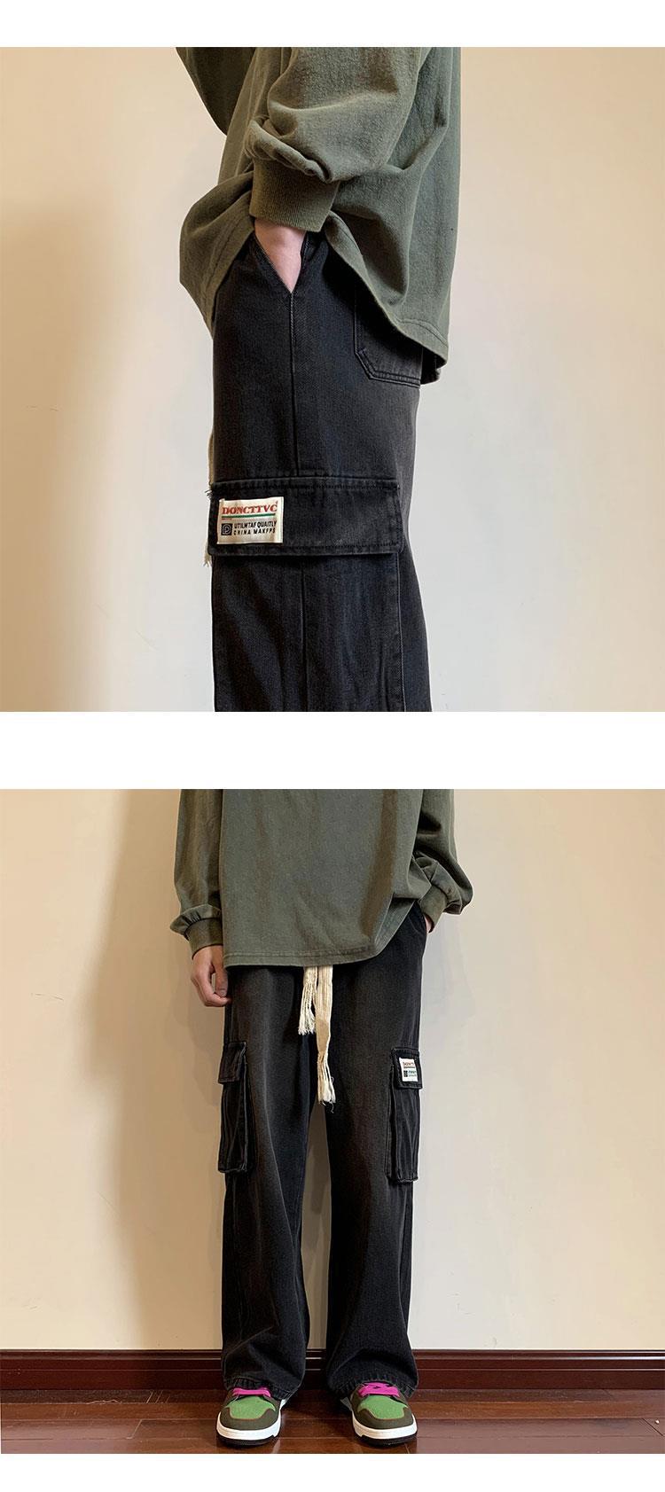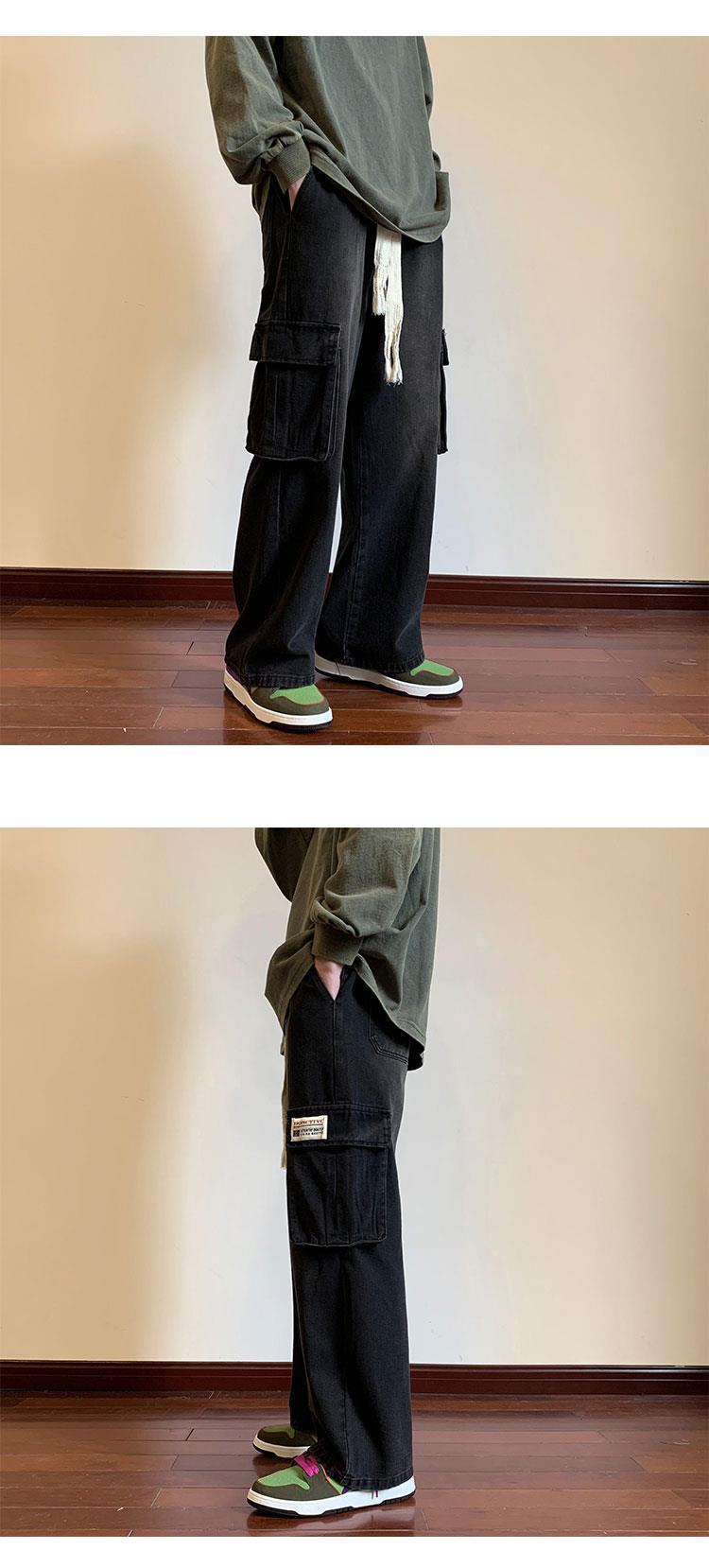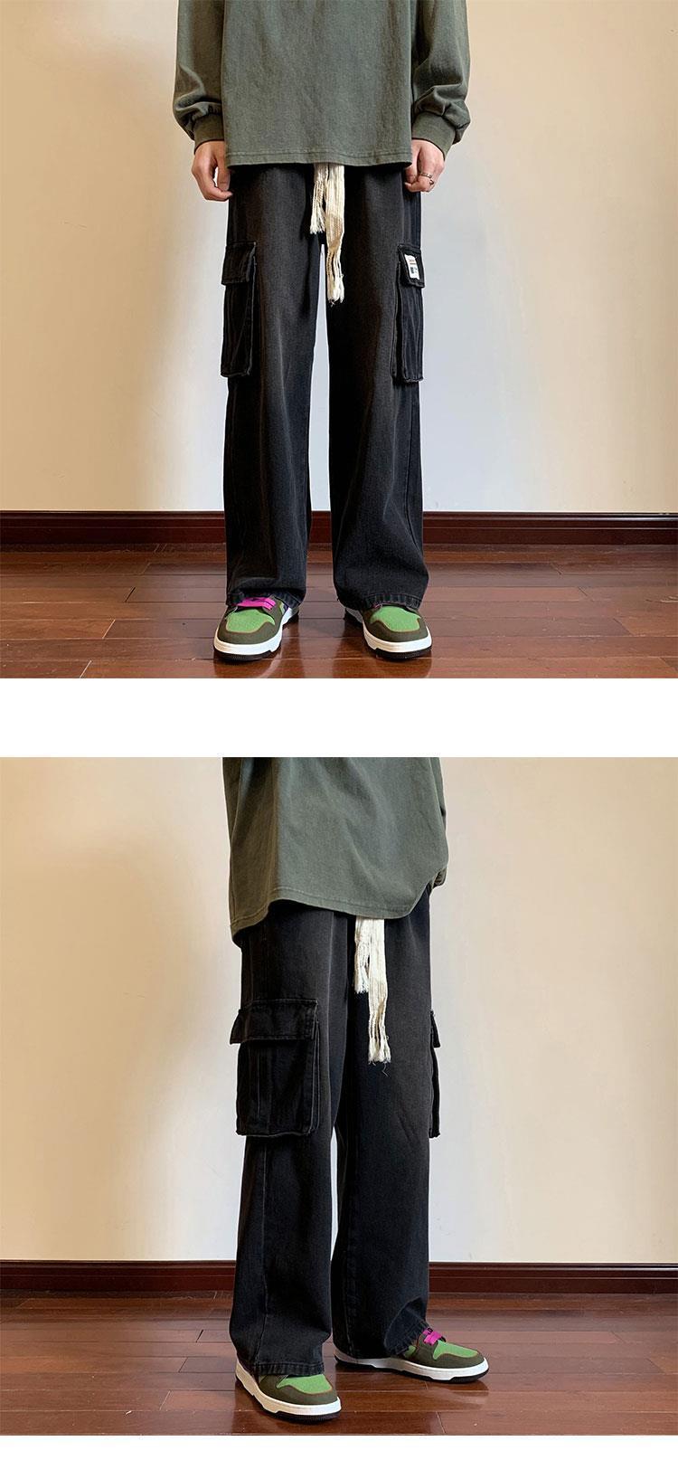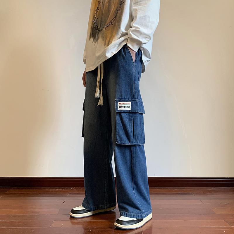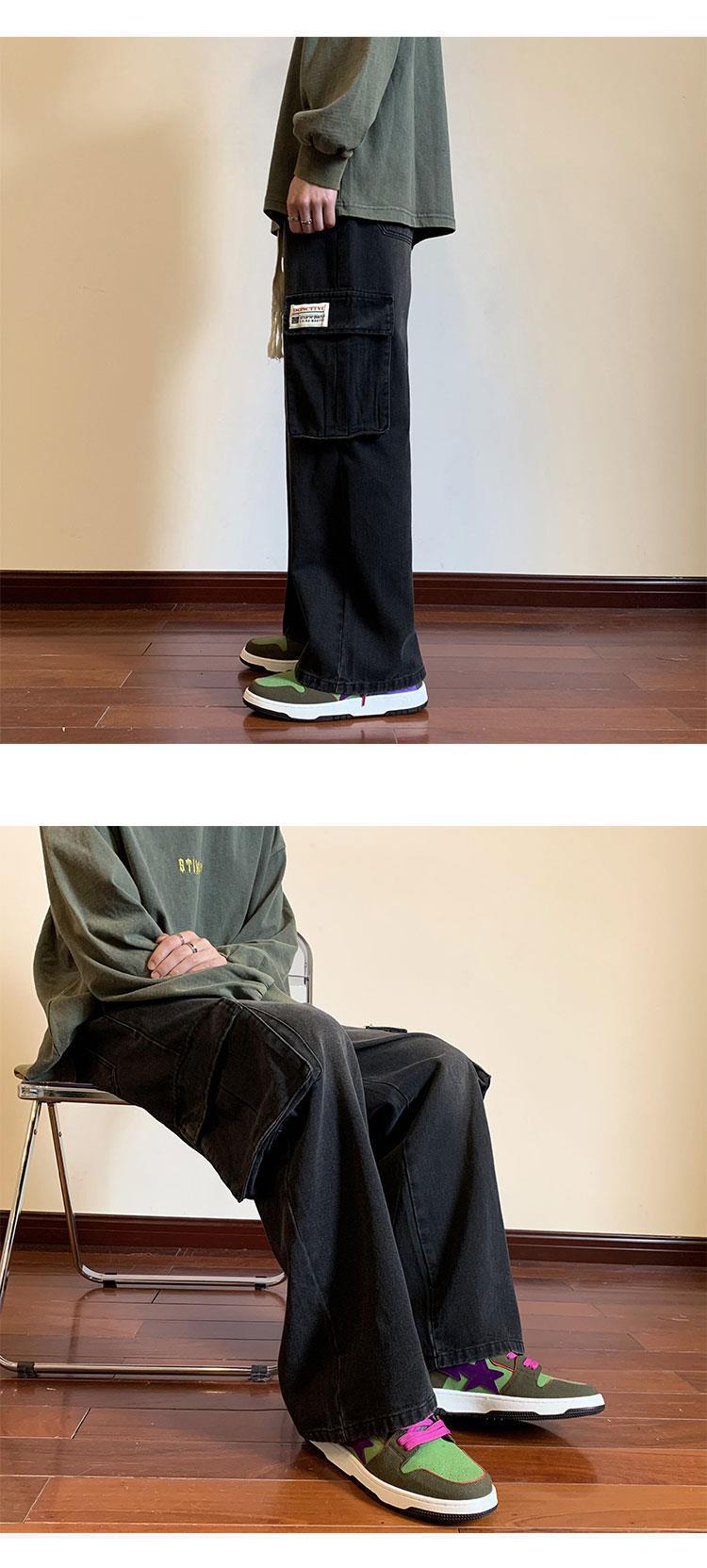 하이 스트리트 트렌디 브랜드 블랙 툴링 청바지 남성 가을 새로운 도착 스트림 넓은 다리 캐주얼 바지 느슨한 스트레이트 바지스토어 가기