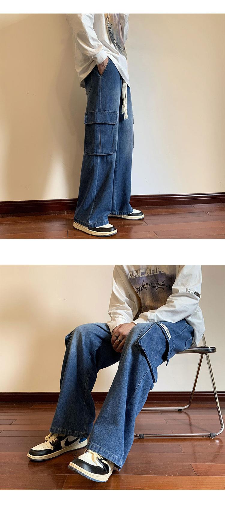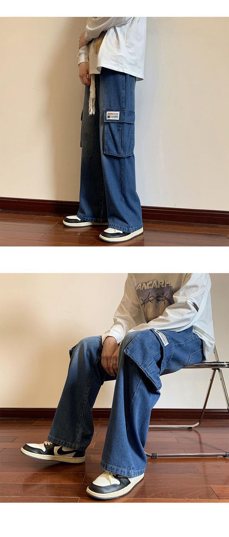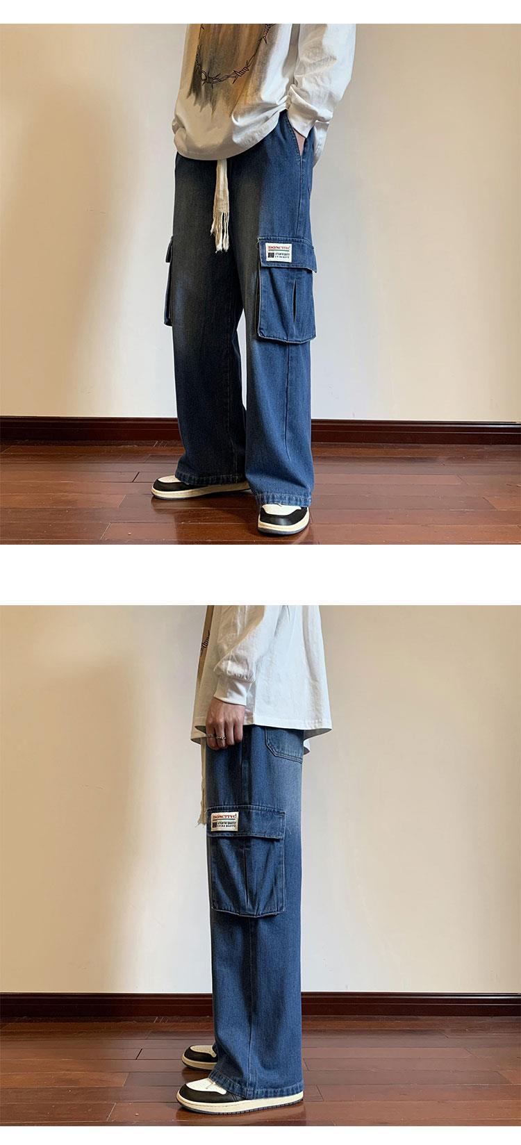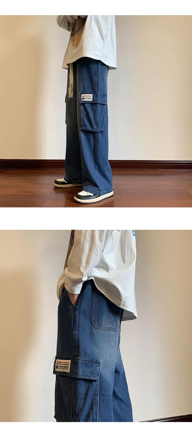 하이 스트리트 트렌디 브랜드 블랙 툴링 청바지 남성 가을 새로운 도착 스트림 넓은 다리 캐주얼 바지 느슨한 스트레이트 바지스토어 가기