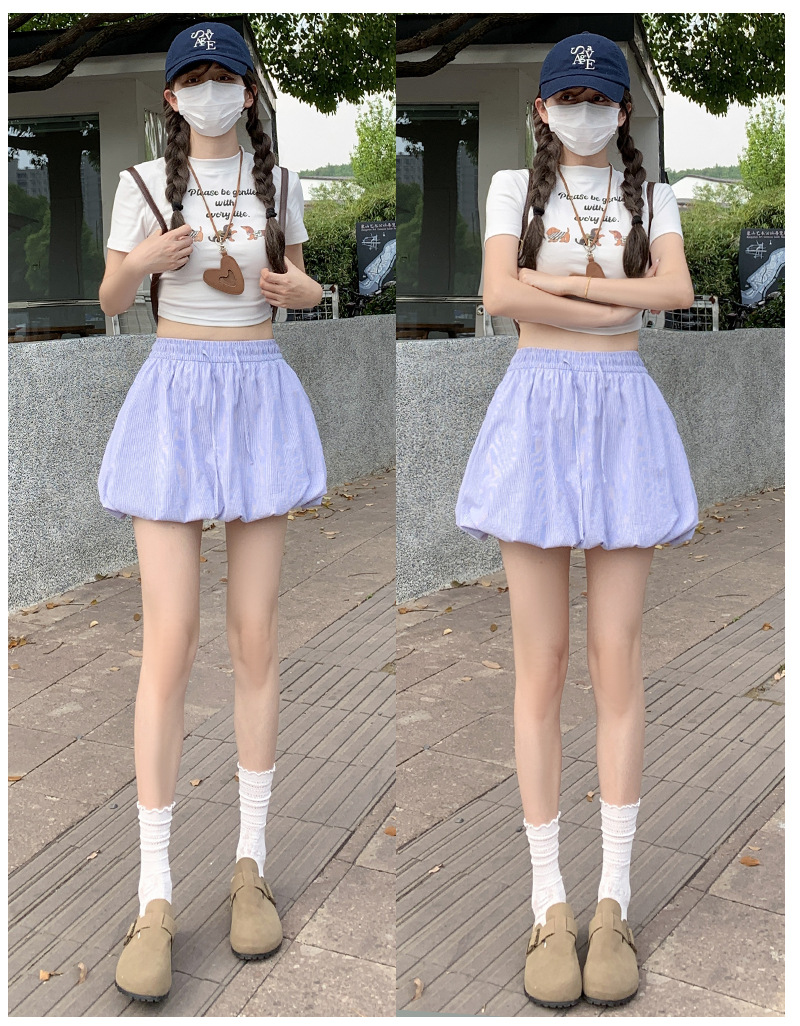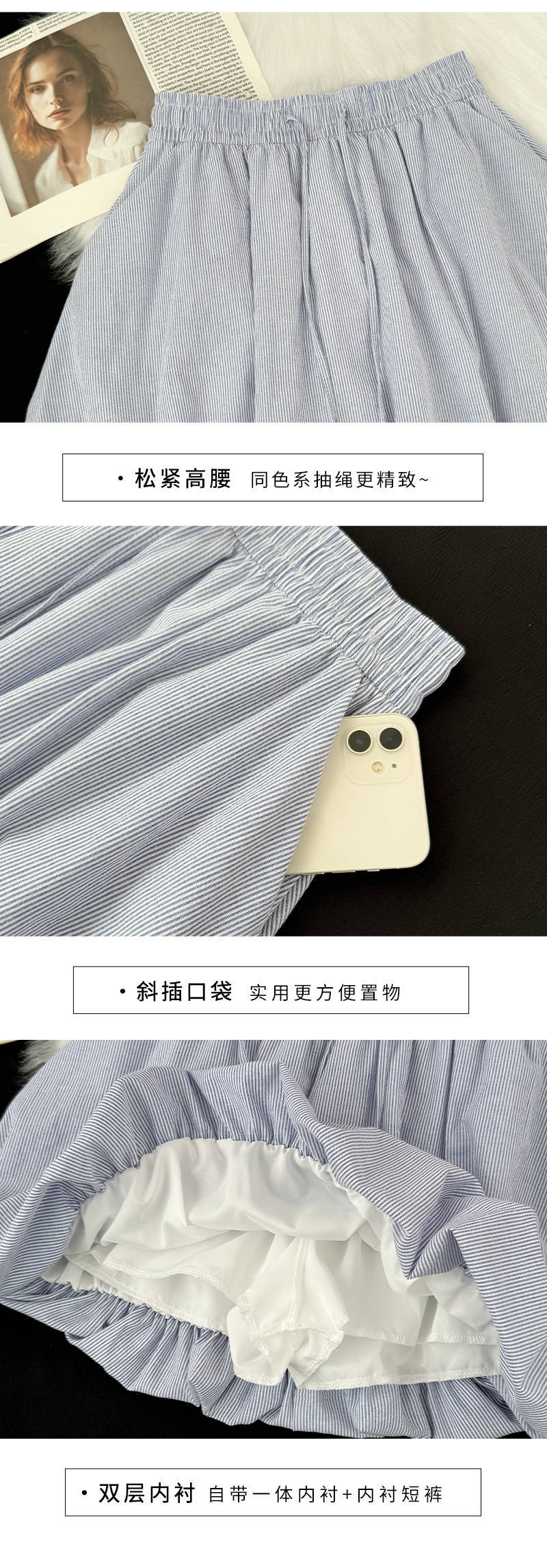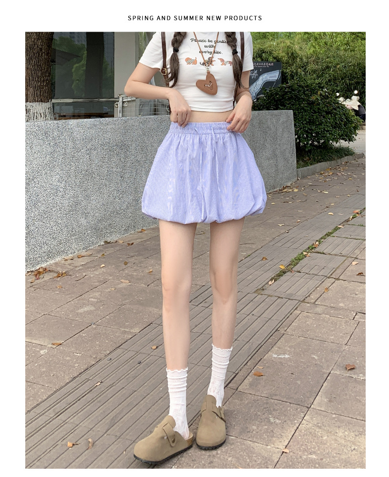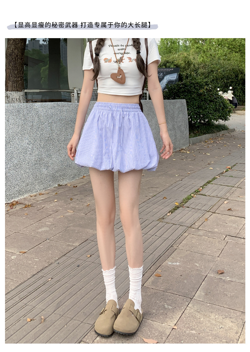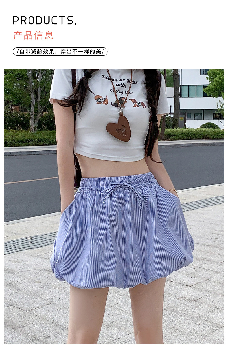 블루 스트라이프 꽃 버드 퍼프 랜턴 원피스 여자 여름 올매치 슬림 핏 눈부심 방지 A 라인 스커트 프랑스 쇼트 스커트스토어 가기