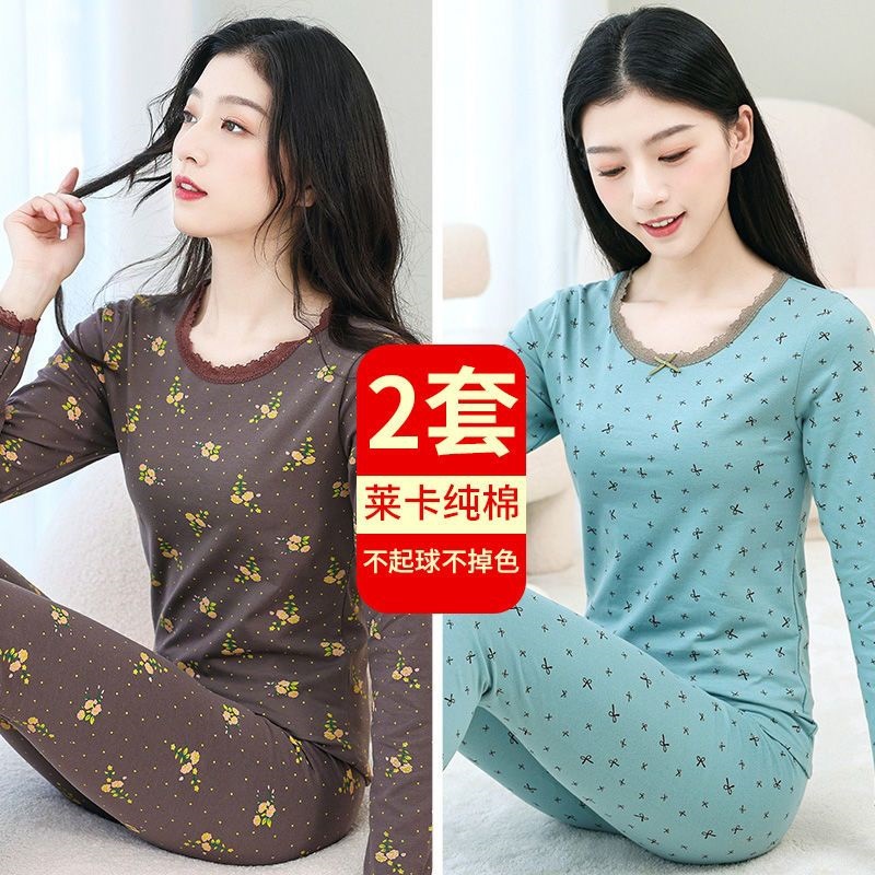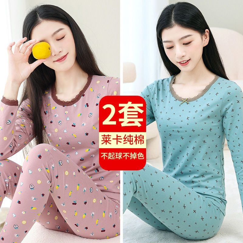 젊은 가을 옷과 바지 세트 면화 열 속옷 여성 학생을위한 얇은 슬림베이스 셔츠 면 가을 및 겨울스토어 가기