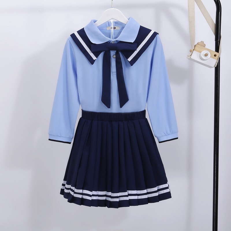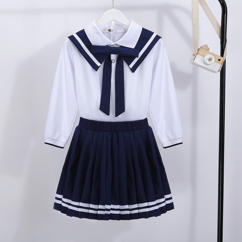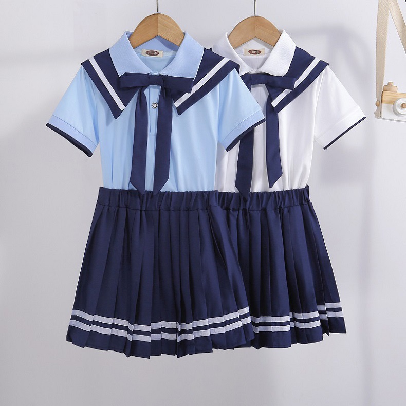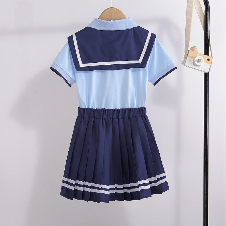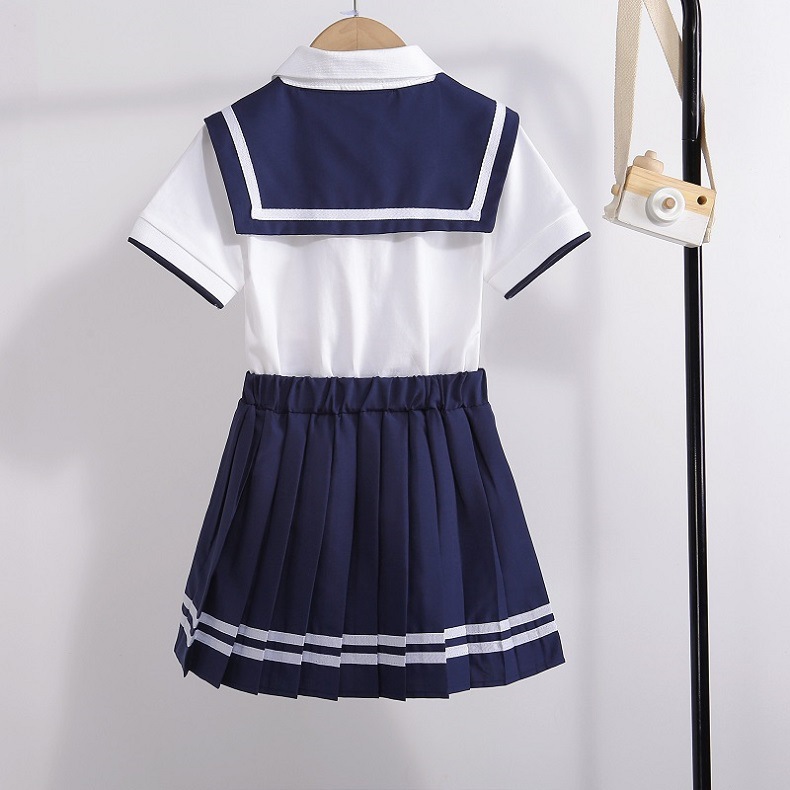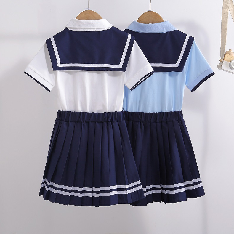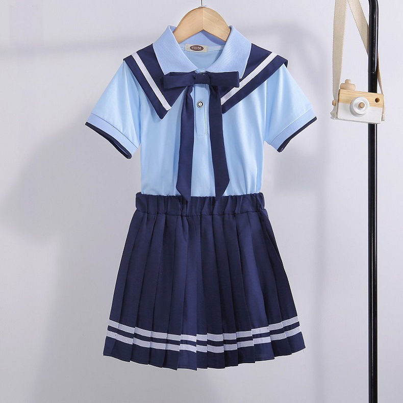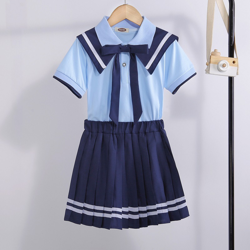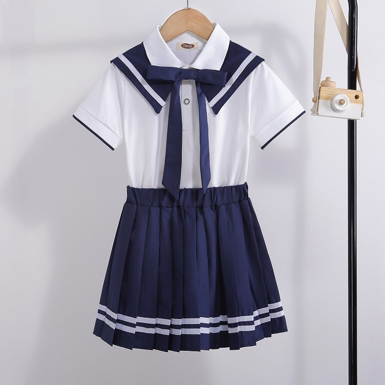여자 대학 스커트 정장 2025 새로운 한국어 스타일 어린이 스타일 반팔 주름 스커트 교복 어린이 투피스 세트