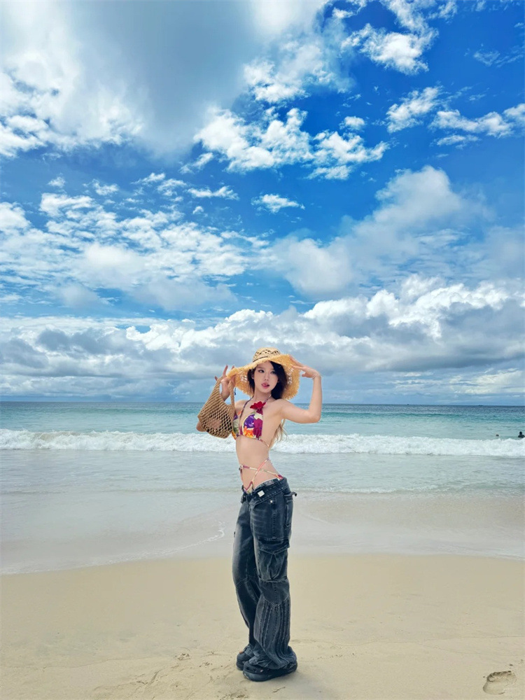 새로운 패션 꽃 컬러 인쇄 섹시한 매달려 목 분할 스트랩 스파이스 소녀 스타일 해변 휴가 비키니 수영복
