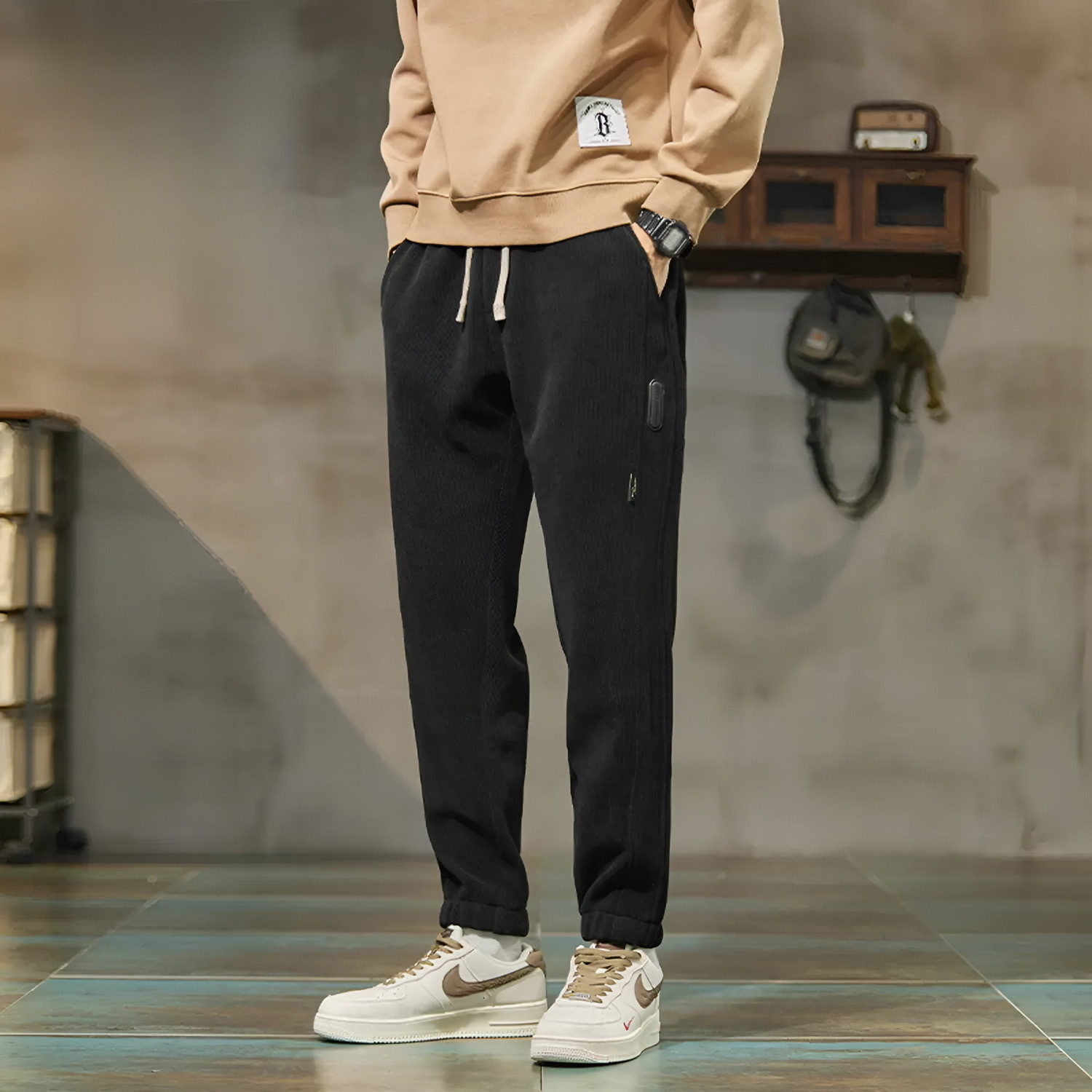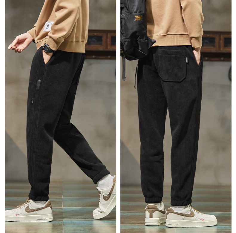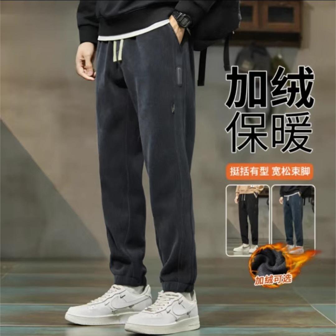 캐주얼 바지 남성용 가을 겨울 새 기모 두꺼운 따뜻한 느슨한 다리 스포츠 바지 스트레이트 롱 바지