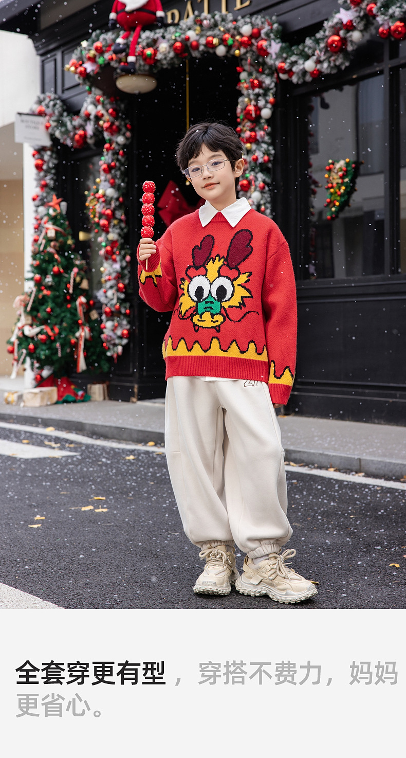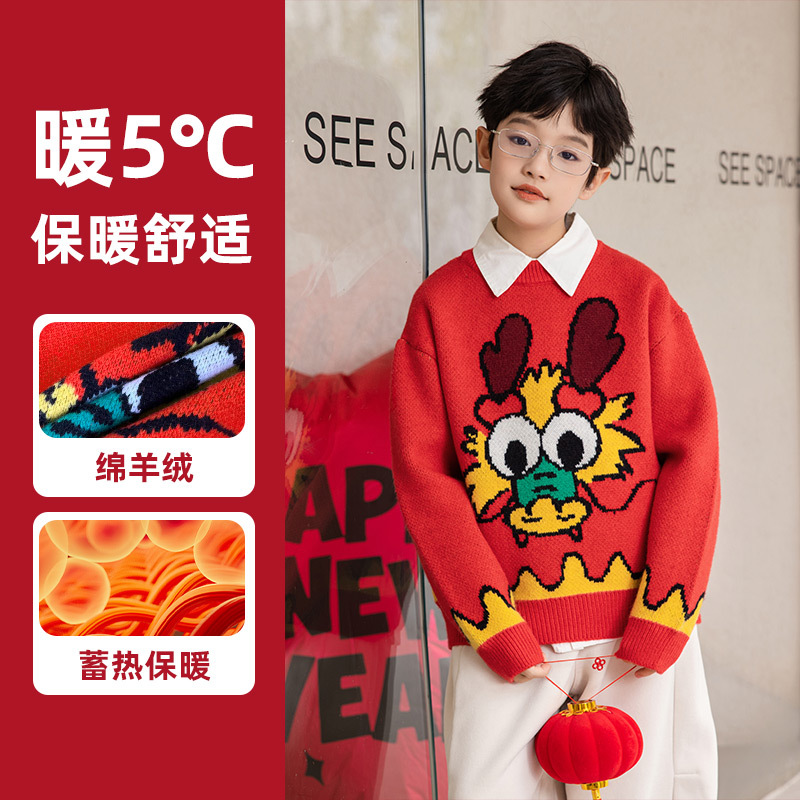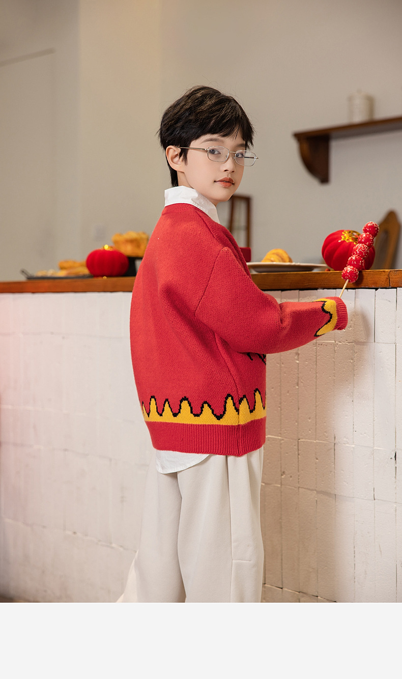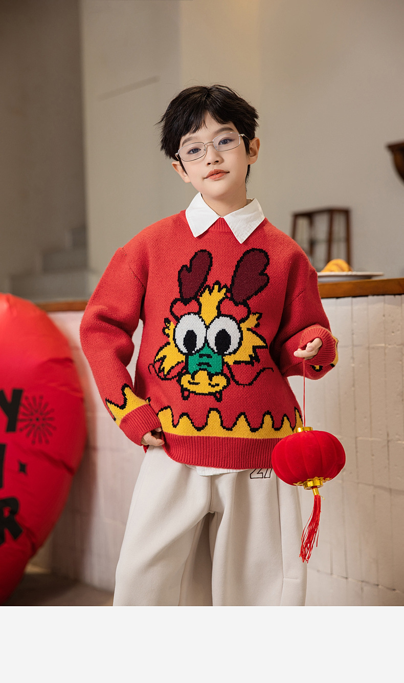 Panda Yuanyuan 2025 초봄 뱀의 해 동물의 해 어린이 스웨터 소년과 소녀 스웨터 제조 업체 도매