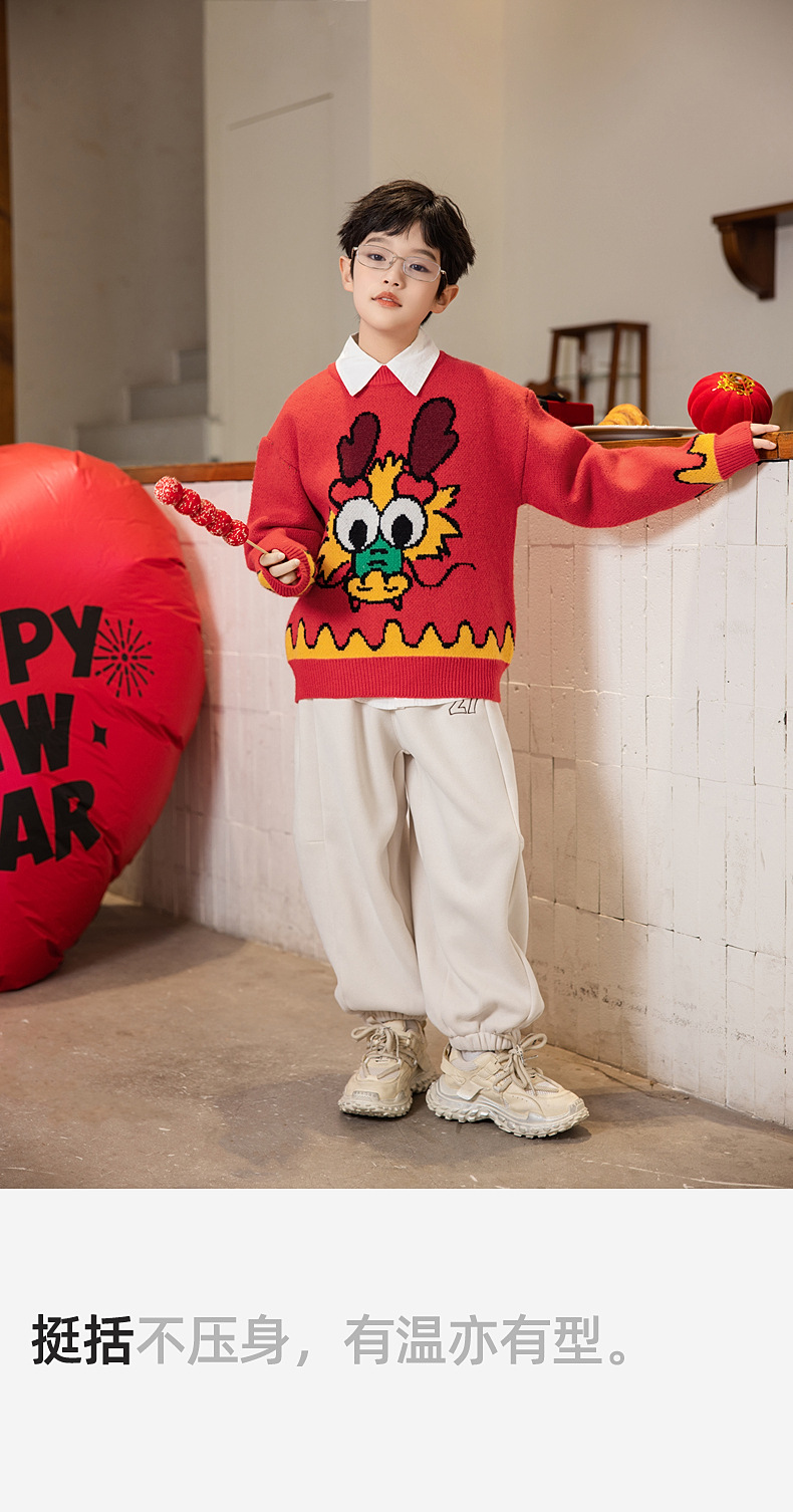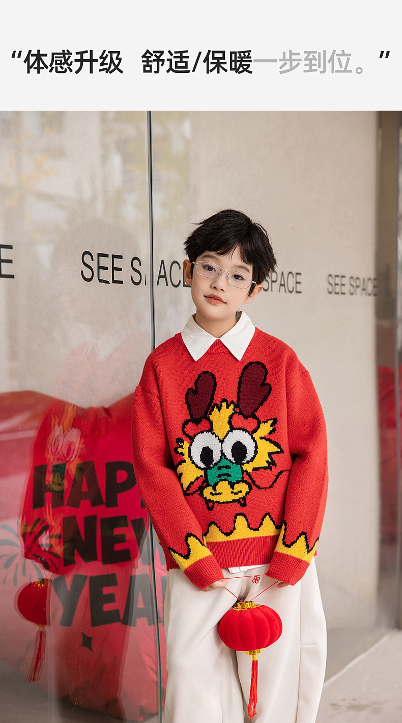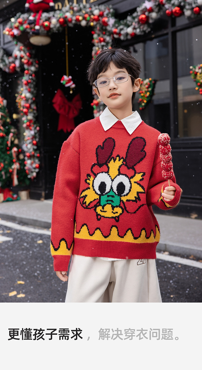 Panda Yuanyuan 2025 초봄 뱀의 해 동물의 해 어린이 스웨터 소년과 소녀 스웨터 제조 업체 도매